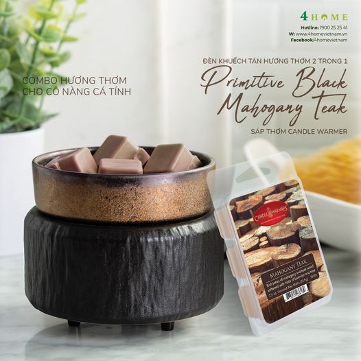 Đi cùng với sáp thơm là chiếc Máy Khuếch Tán Hương Thơm 2 in 1 Primitive Black. Máy có thiết kế hiện đại với gam màu đen - vàng đồng cá tính. Không chỉ đốt sáp thơm, bạn còn có thể sử dụng máy để đốt tinh dầu và nến hũ.