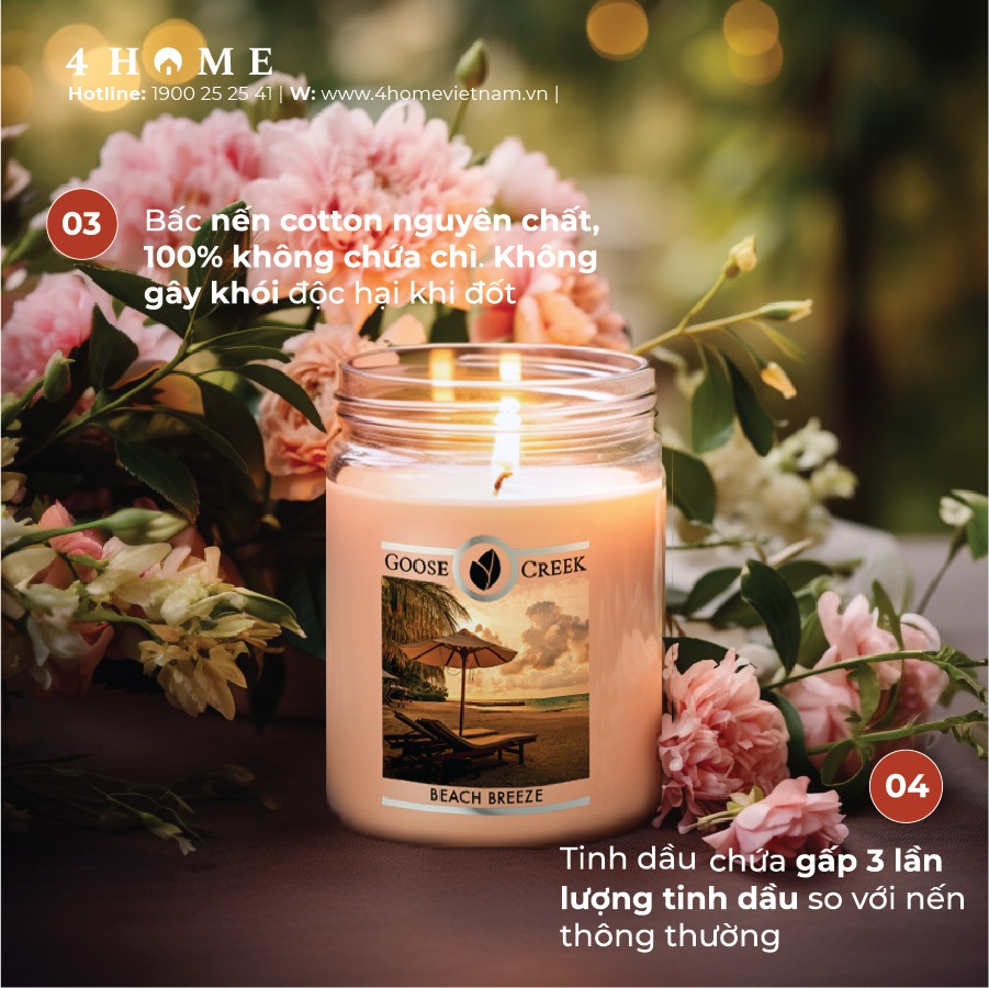 4. Tinh dầu chất lượng và độc đáo. Nến Goose Creek chứa gấp 3 lần lượng tinh dầu so với nến thông thường