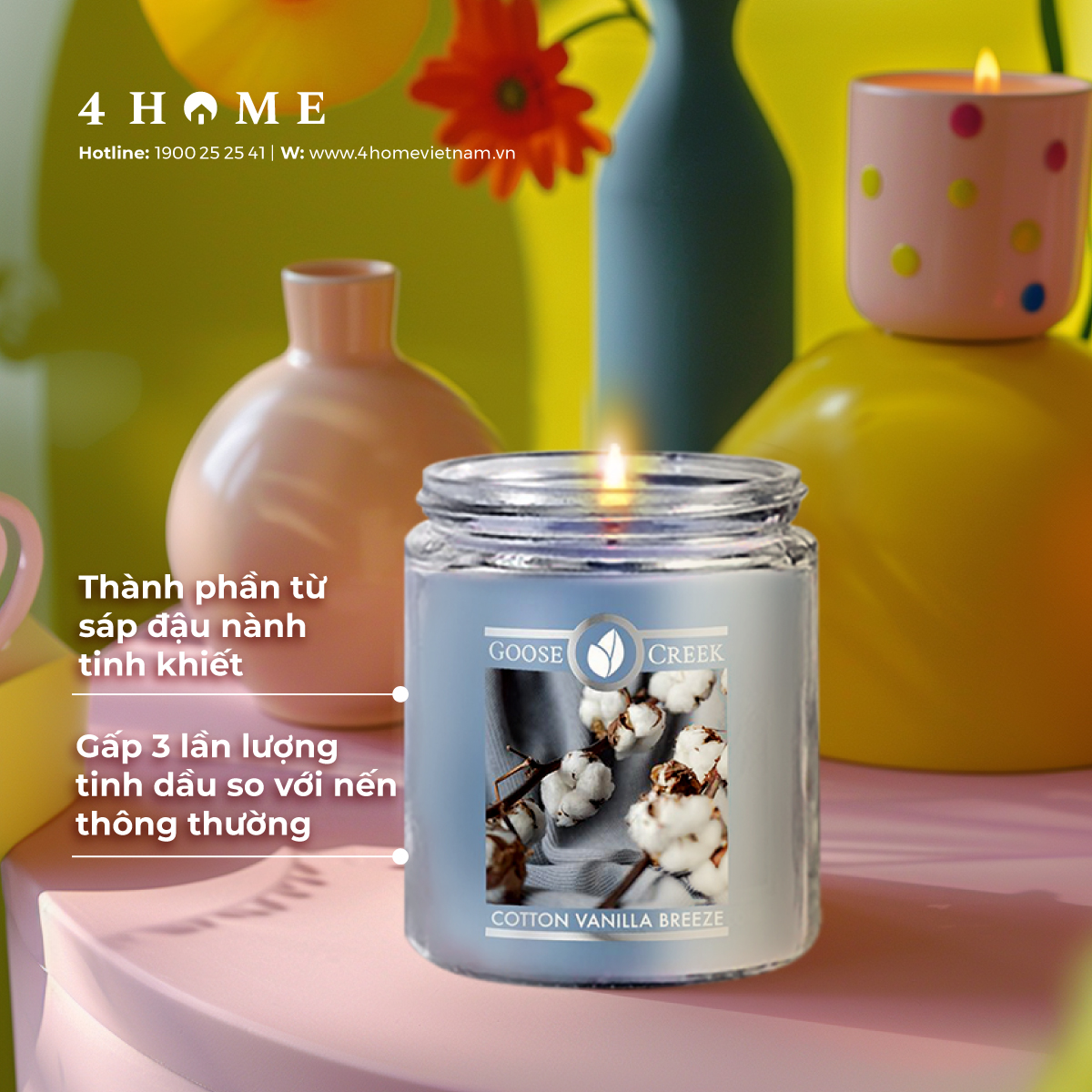 Được làm từ hỗn hợp sáp đậu nành độc đáo, độc quyền của Goose Creek, mỗi hũ nến đều được sử dụng các nguyên liệu chất lượng hàng đầu từ Hoa Kỳ và trên toàn thế giới.