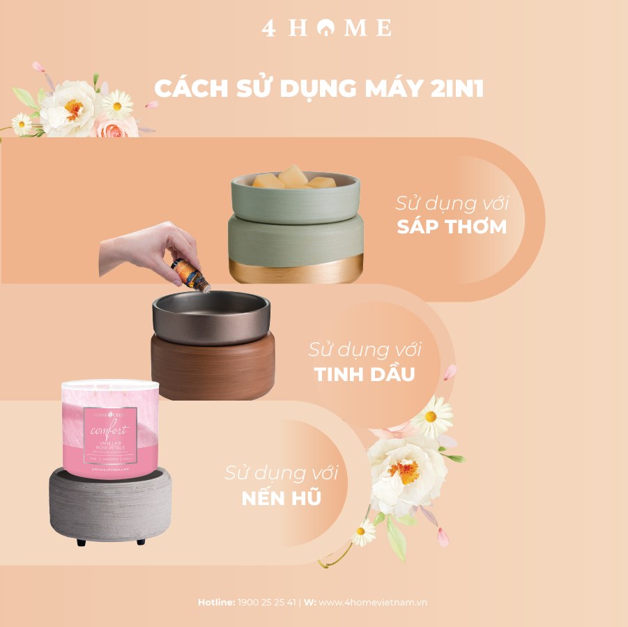 Máy KTHT 2in1 là phương pháp mới để mang đến hương thơm cho không gian sống của bạn bằng sáp thơm hoặc tinh dầu.