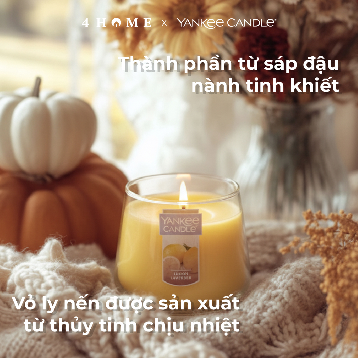 Sáp đậu nành tinh khiết – bấc cotton 100% không chì, an toàn cho sức khỏe.