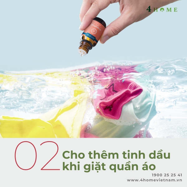 Để thực hiện, bạn nhỏ trực tiếp một vài giọt tinh dầu thơm quần áo vào nước giặt tùy vào khối lượng quần áo hoặc mức độ hương thơm nhiều hay ít. Hoặc có thể sử dụng một miếng vải trắng, đổ một lượng nhỏ tinh dầu lên đó rồi bỏ vào giặt cùng quần áo.
