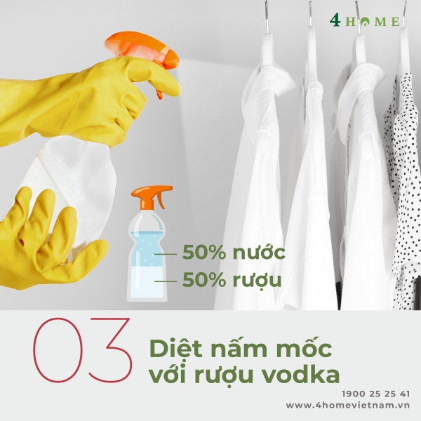 Mẹo này áp dụng cho các thể loại quần áo “cao tuổi” hoặc giặt áo len cần cất giữ. Rượu vodka chính là vị cứu tinh giúp bạn tiêu diệt ẩm mốc. Để tiến hành, bạn pha nước và rượu theo tỷ lệ 1:1, sau đó cho vào bình xịt. Cuối cùng là xịt hỗn hợp lên những khu vực quần áo có mùi hôi, sau đó treo ở nơi thông thoáng. Rượu vodka sẽ giúp tiêu diệt mọi vi khuẩn ẩm mốc, trả lại sức sống cho những bộ trang phục của bạn