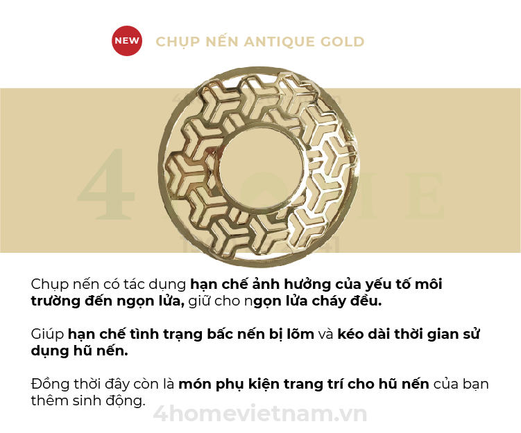 Chụp nến có tác dụng hạn chế ảnh hưởng của yếu tố môi trường đến ngọn lửa, giữ cho ngọn lửa cháy đều, giúp kéo dài thời gian sử dụng cho nến. Đồng thời đây còn là món phụ kiện trang trí cho hũ nến của bạn thêm sinh động.