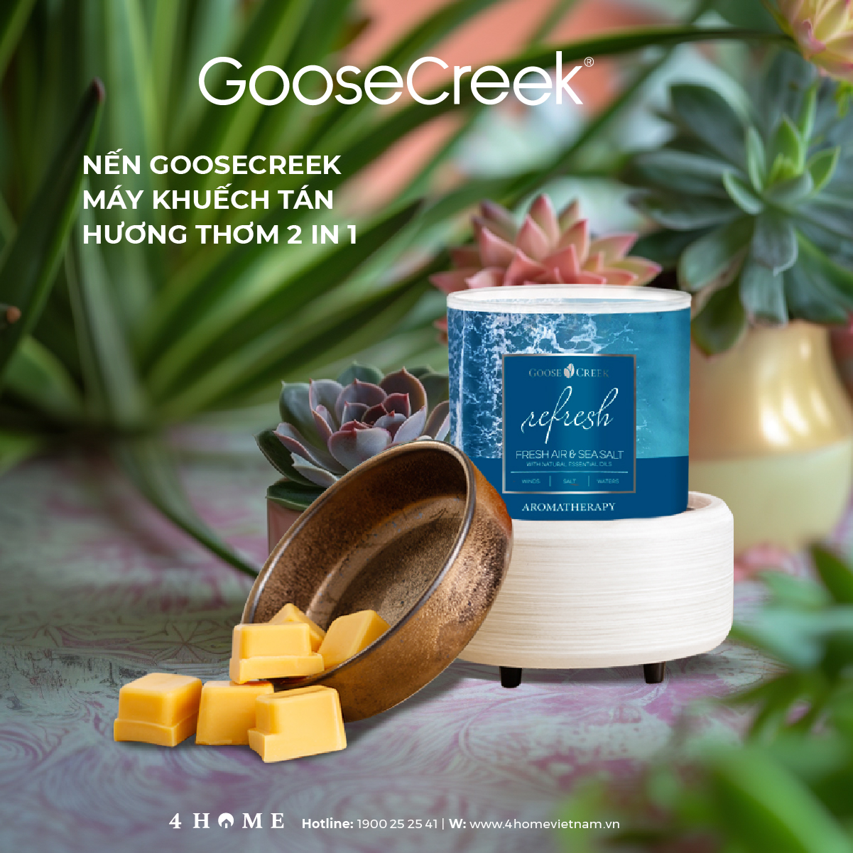 Tận hưởng trải nghiệm thư giãn diệu kỳ với ánh sáng ấm áp và hương thơm của Combo Đèn Đốt Nến + Nến Thơm Goose Creek.