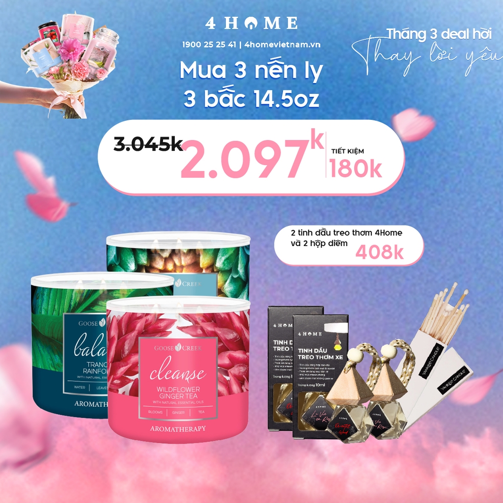Combo - Mua 1 nến hũ Goose Greek 24oz tặng 2 tinh dầu treo thơm xe 4Home và 1 hộp diêm