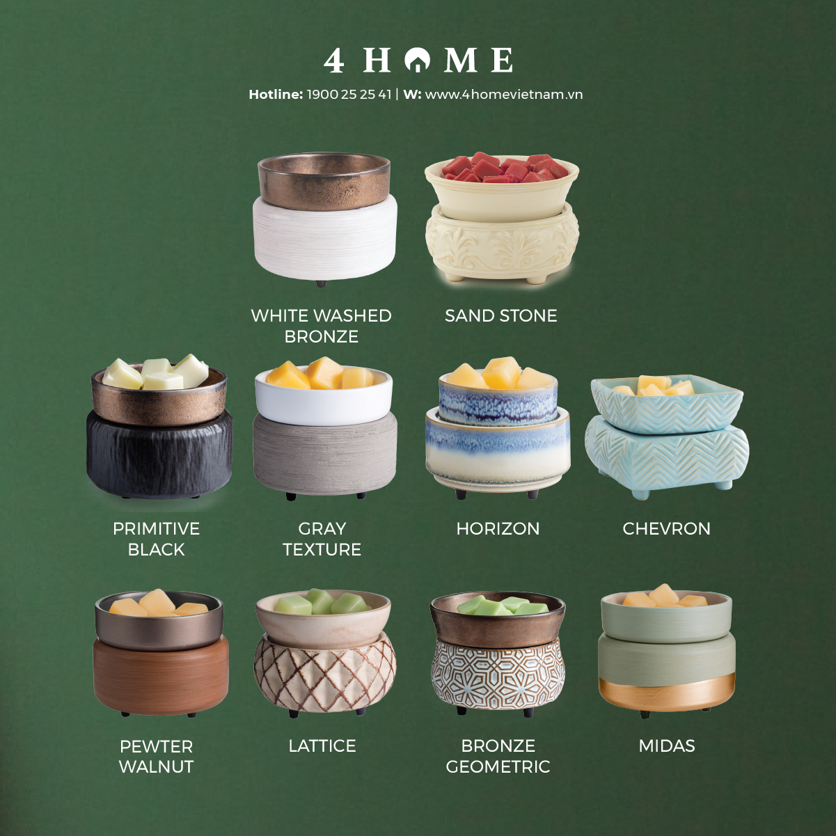 4Home tự hào giới thiệu bộ sưu tập máy khuếch tán hương thơm 2-in-1, kết hợp giữa việc đốt sáp thơm và tinh dầu. Với thiết kế hiện đại và đa dạng, sản phẩm mang lại trải nghiệm hoàn hảo cho không gian sống của bạn.