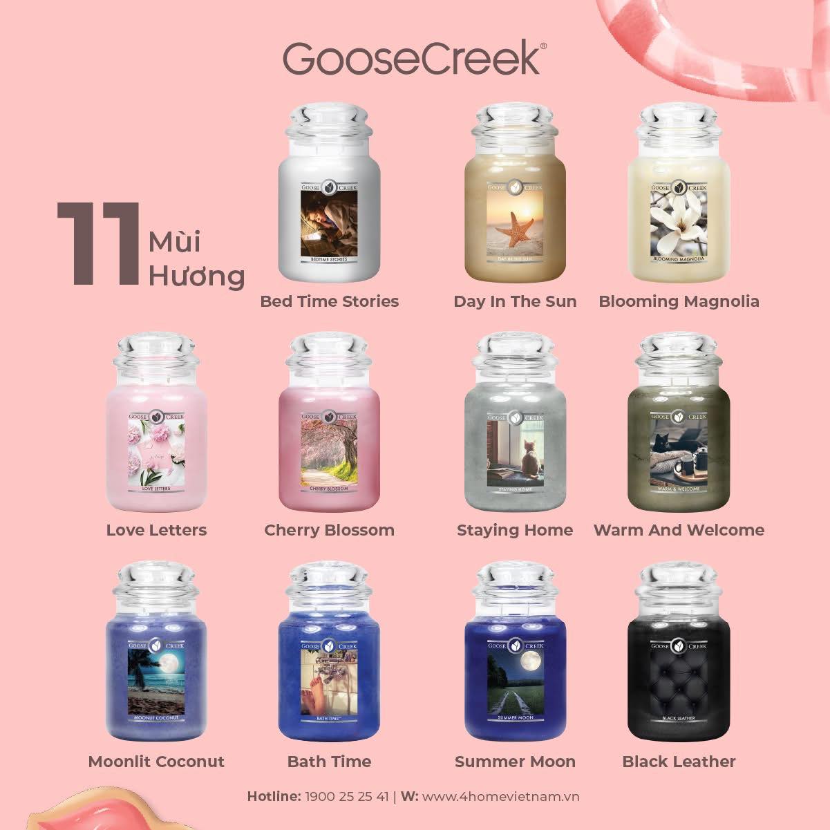 BST nến hũ Goose Creek sẽ dùng mùi hương để cùng bạn vẽ nên câu chuyện tình thơ mộng. Mỗi mùi hương là một bản tình ca, gợi nhớ đến những cung bậc cảm xúc: ngọt ngào, say đắm và ấm áp yêu thương.