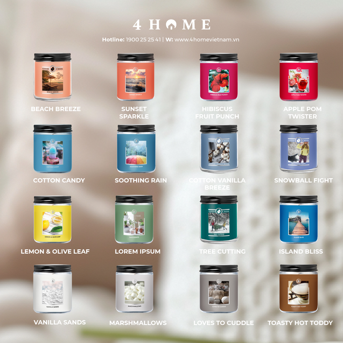 1. Hương Thơm Đa Dạng: Nến ly 7oz Goose Creek có hàng loạt mùi hương phong phú như Vanilla, Lavender, Fresh Linen, và Eucalyptus Mint. Mỗi hương thơm đều được chiết xuất từ tinh dầu thiên nhiên, mang đến trải nghiệm thư giãn tuyệt vời.
