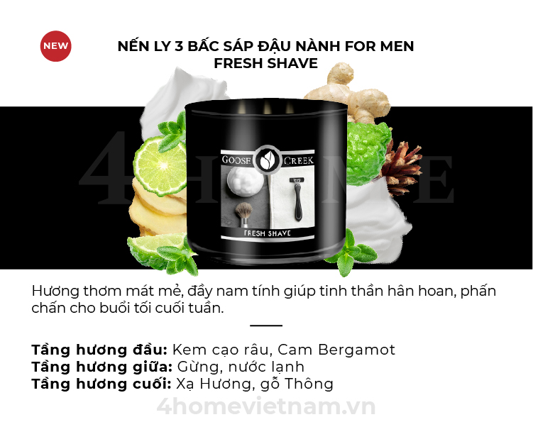 Nến ly 3 bấc sáp đậu nành (For men) - Fresh Shave
