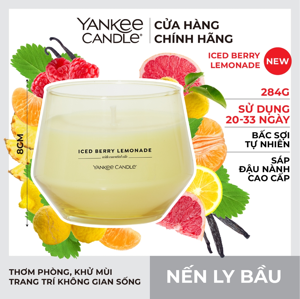 Nến ly bầu Yankee Candle mùi Iced Berry Lemonade