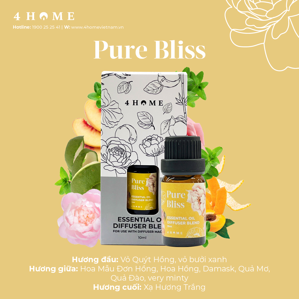 Chăm sóc tinh thần và nâng niu cảm xúc mỗi ngày với BST tinh dầu 4Home. Với hòa quyện giữa các note hương từ thiên nhiên, tinh dầu 4Home sẽ mang tới cho bạn không gian tươi mát và an yên. Để bạn hoàn toàn yên tâm sử dụng mỗi ngày, ngay cả khi nhà có trẻ nhỏ hay người có làn da nhạy cảm.