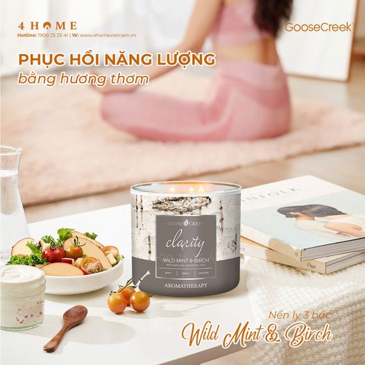 Hãy để hương thơm từ Nến ly 3 bấc sáp đậu nành Aromatherapy - Wild Mint & Birch giúp phục hồi năng lượng tinh thần cho bạn nhé!