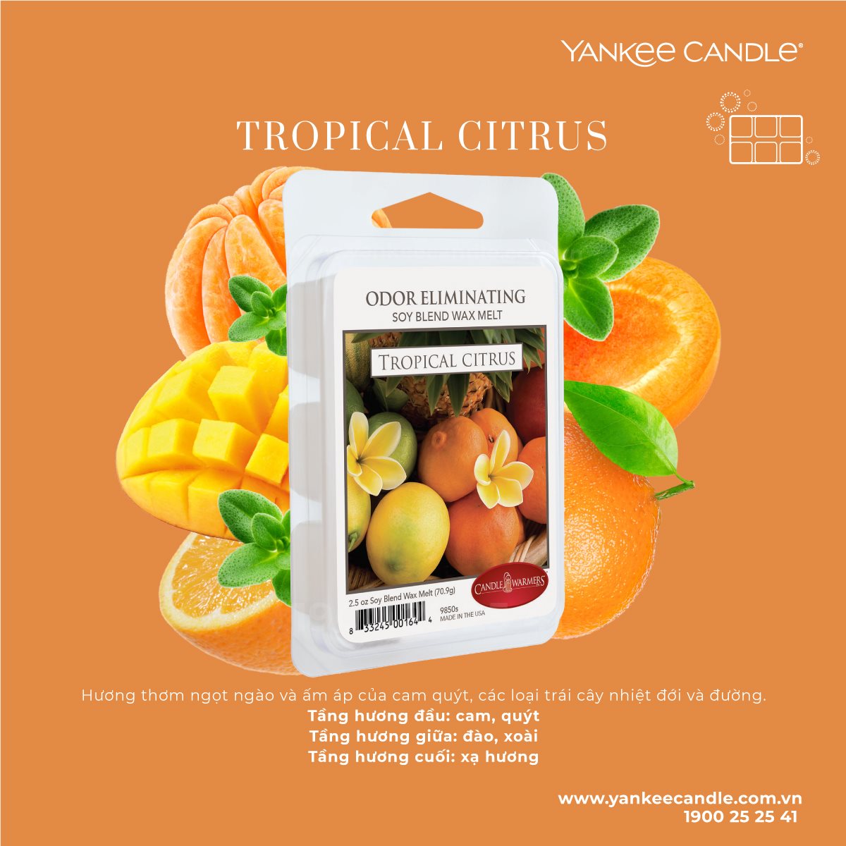 Tropical Citrus: Hương thơm ngọt ngào và ấm áp của cam quýt, các loại trái cây nhiệt đới và đường.