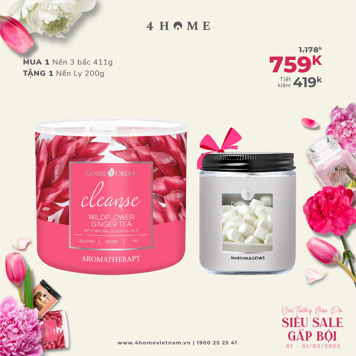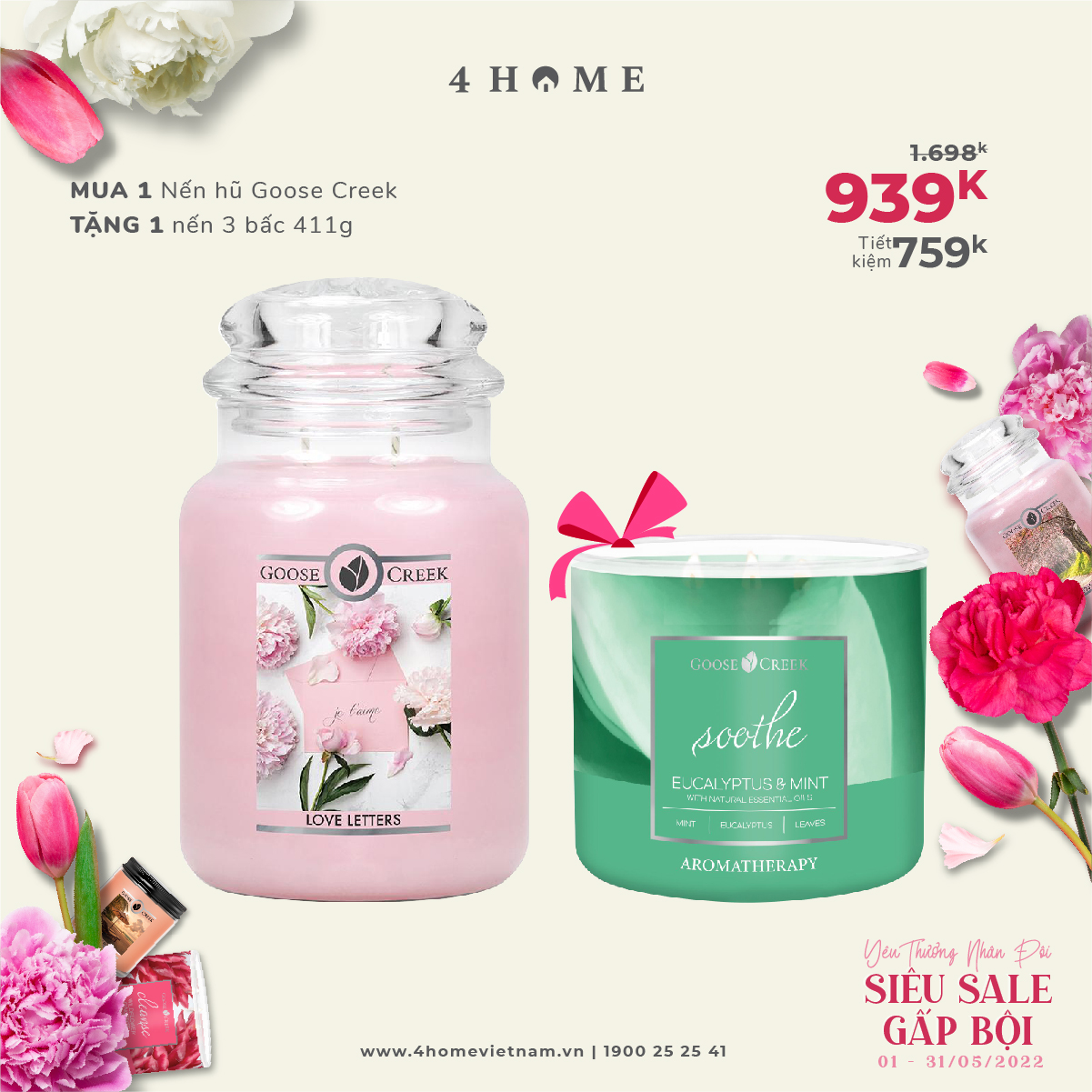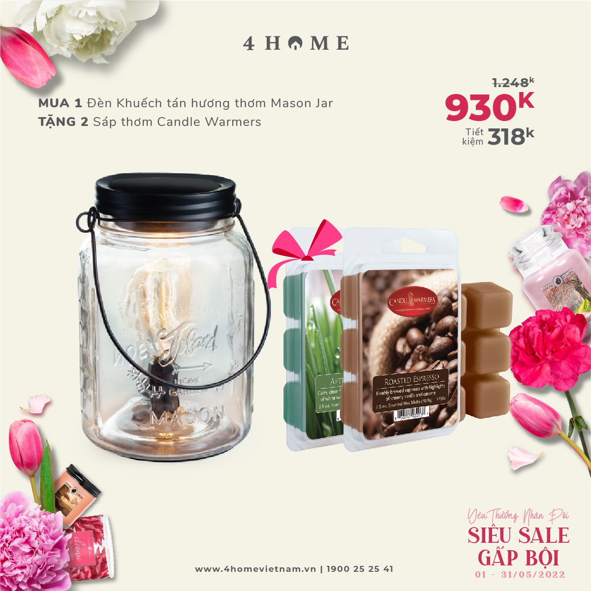 Cùng 4HOME tham gia chương trình khuyến mãi tháng 5 đầy yêu thương với nhiều ưu đãi cực hấp dẫn dành tặng người bạn yêu thương nhé!