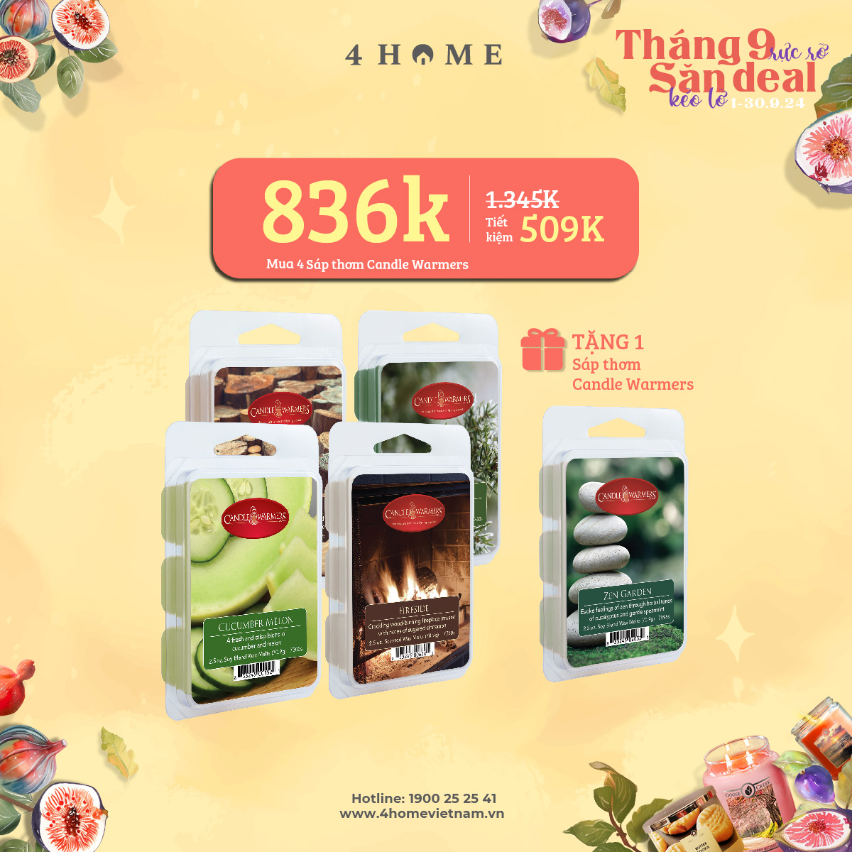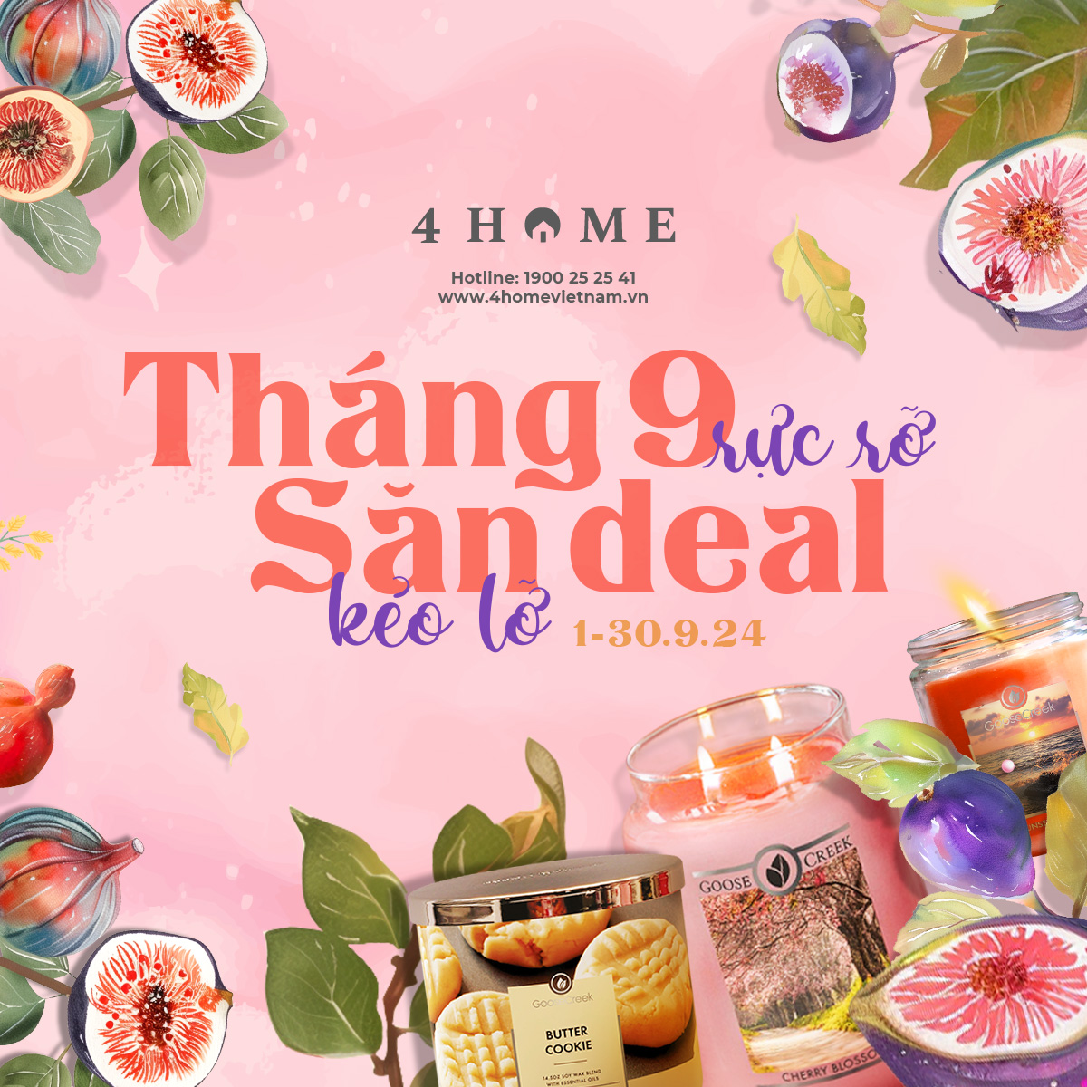 Tháng 9 đã đến, mang theo sắc màu rực rỡ và những ưu đãi không thể nào bỏ lỡ từ 4Home! Từ ngày 1 đến 30/9/2024, hãy cùng 4Home biến mọi khoảnh khắc trong không gian sống của bạn trở nên lấp lánh với hương thơm quyến rũ từ những ngọn nến tinh tế.