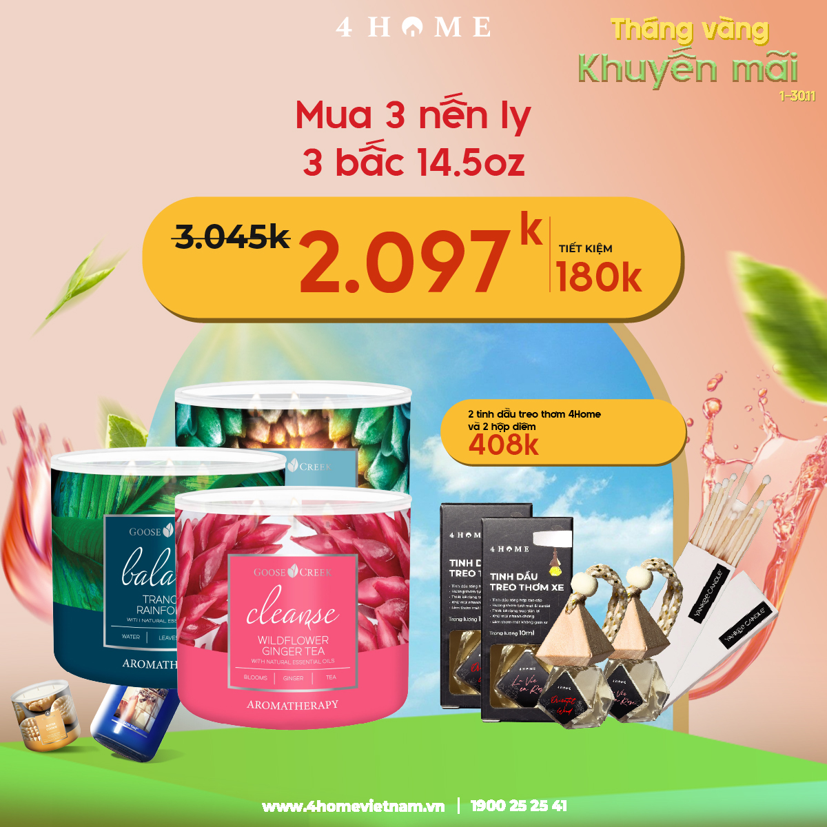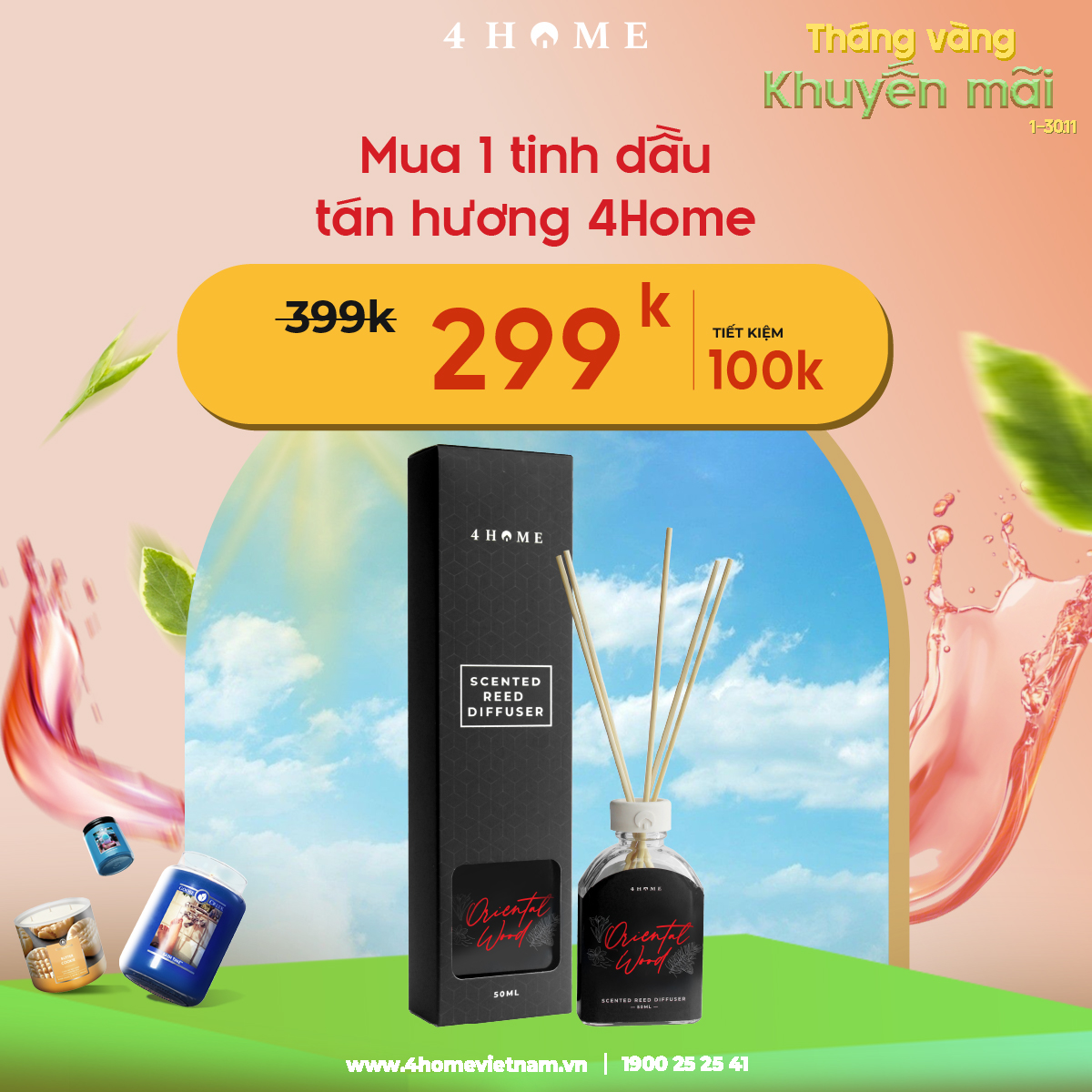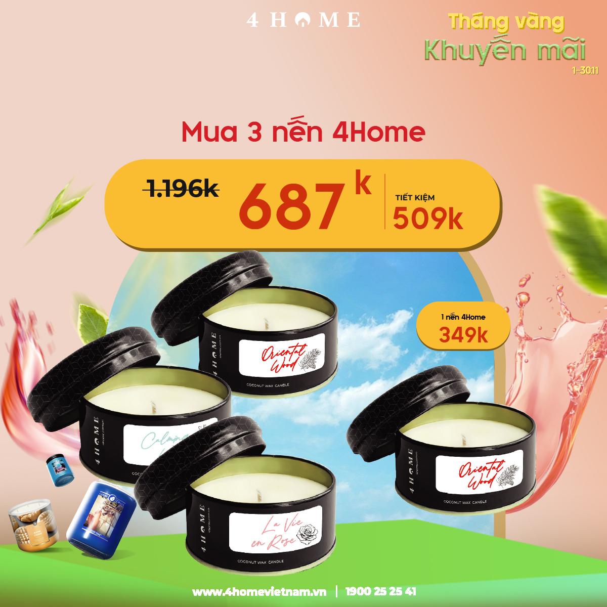 4HOME gửi đến bạn hàng loạt deal vàng cực tiết kiệm từ nến thơm, tinh dầu, máy khuếch tán đến phụ kiện mùi hương.