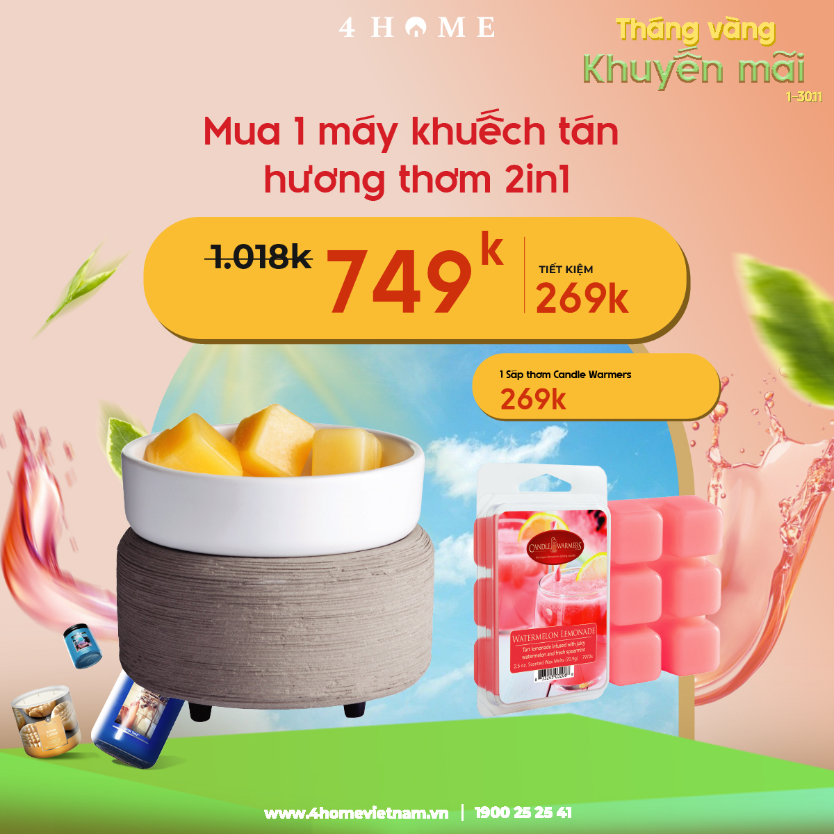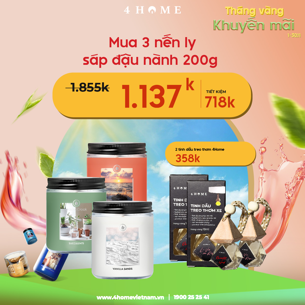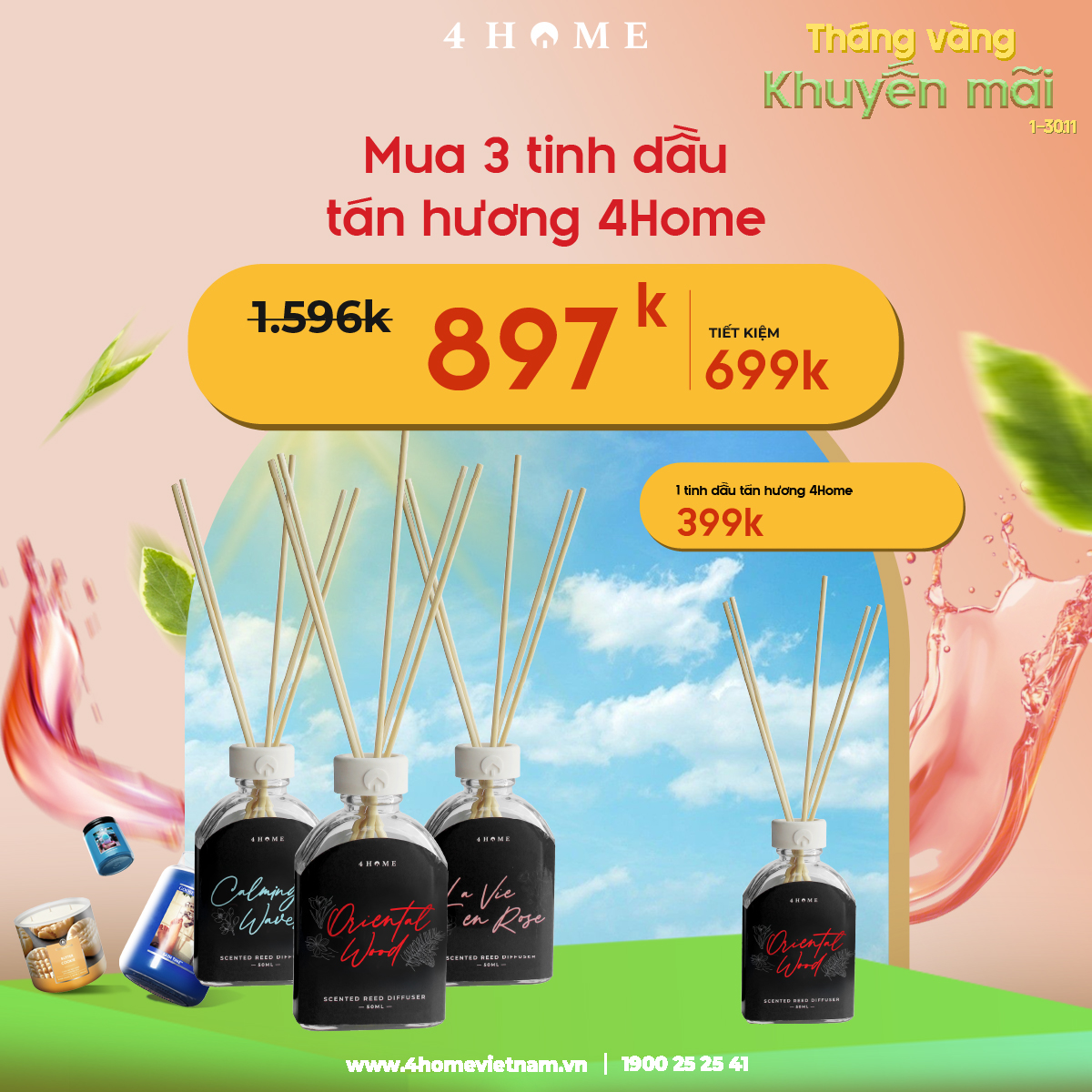 4HOME gửi đến bạn hàng loạt deal vàng cực tiết kiệm từ nến thơm, tinh dầu, máy khuếch tán đến phụ kiện mùi hương.