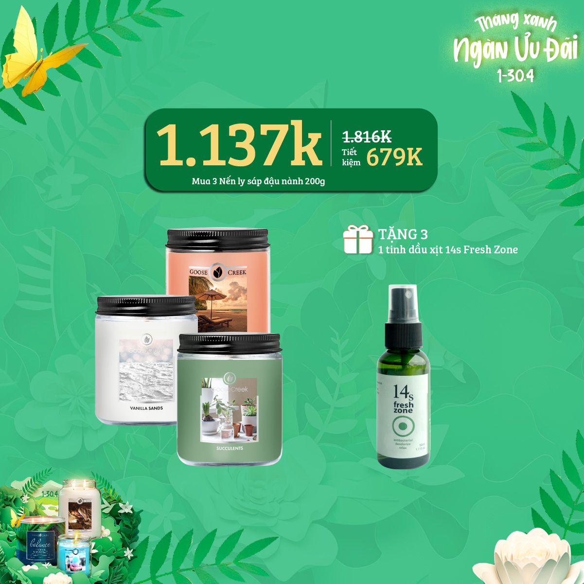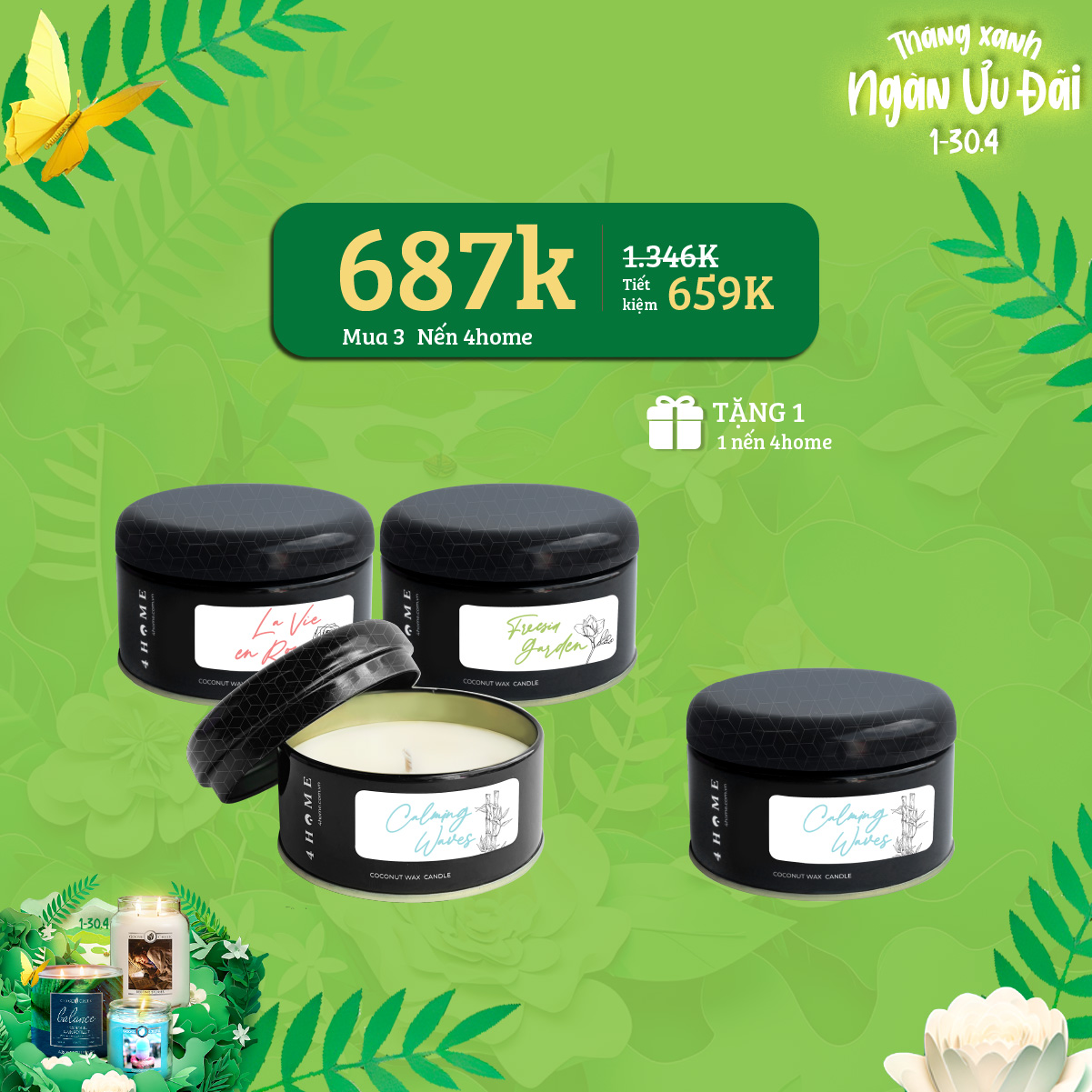 Trải nghiệm hương thơm xanh từ thiên nhiên, mang đến cho bạn những phút giây thư giãn tuyệt vời, tận hưởng bầu không khí trong xanh trọn vẹn cùng ngàn ưu đãi hấp dẫn trong tháng 4 này với 4Home!
