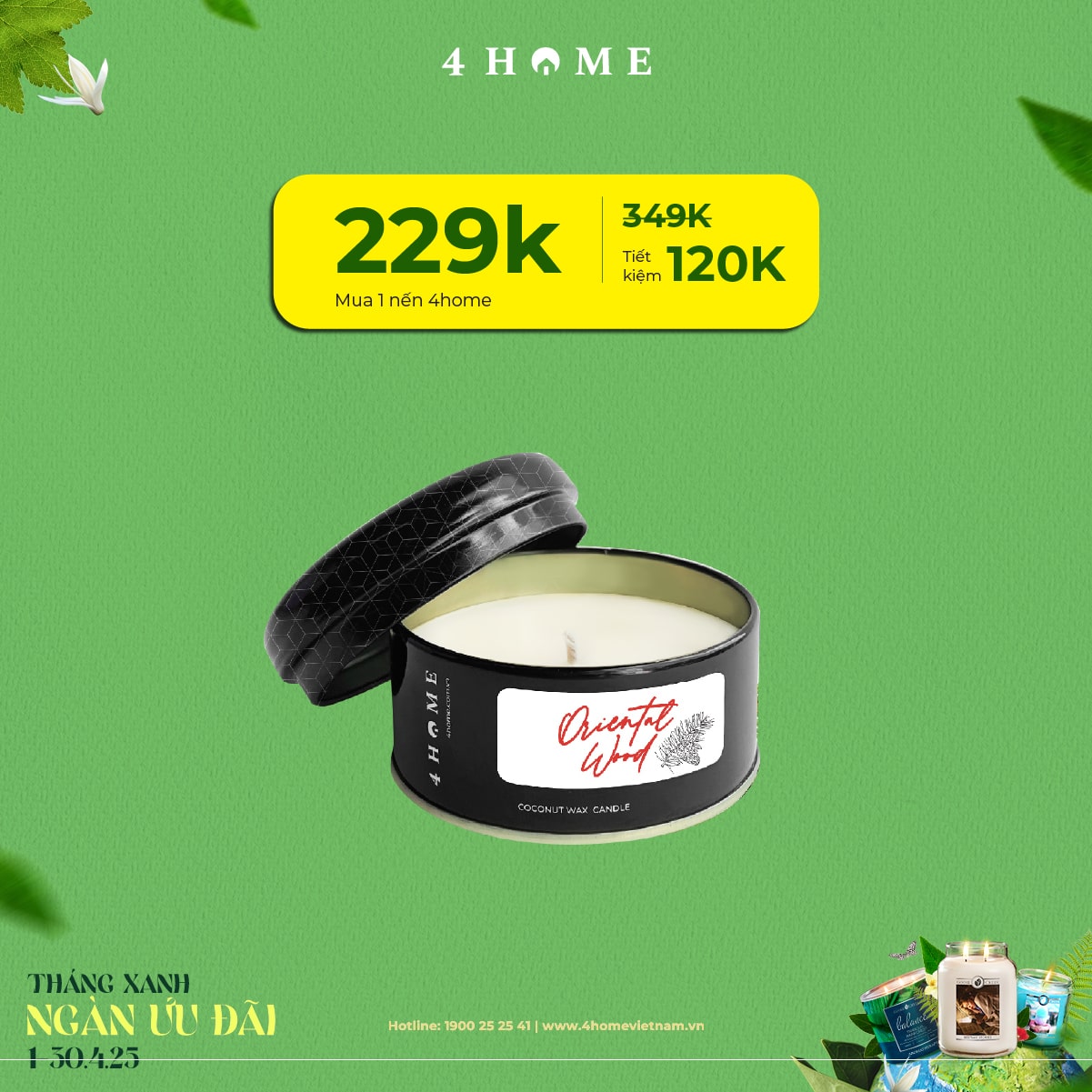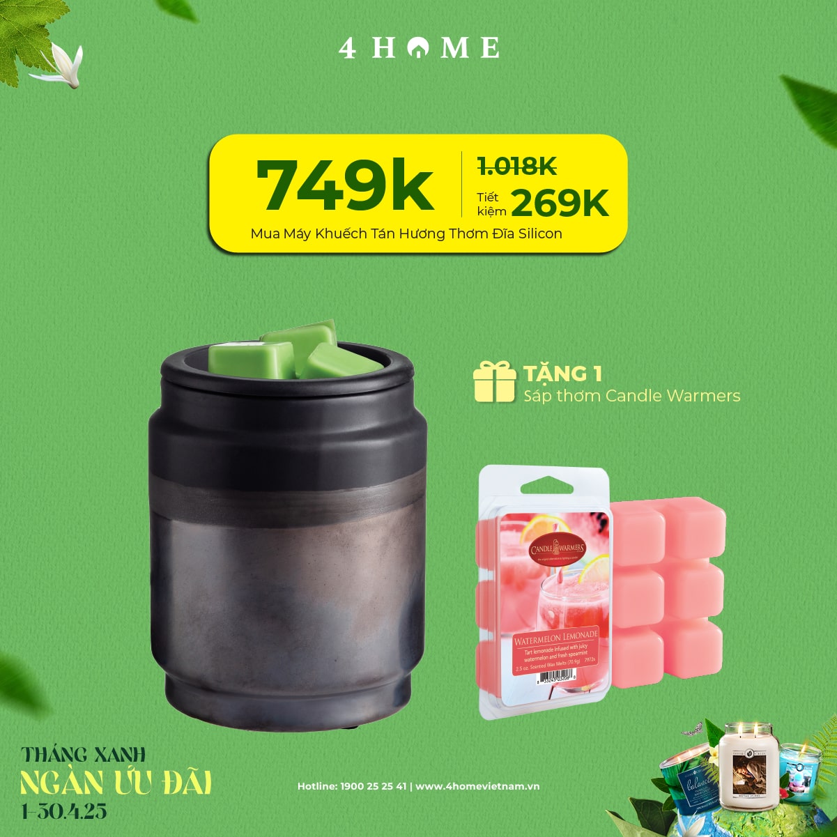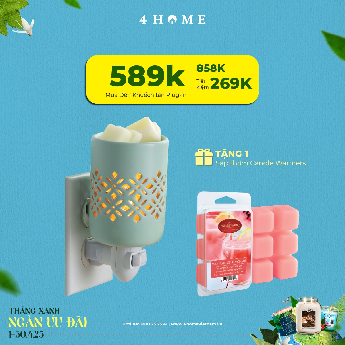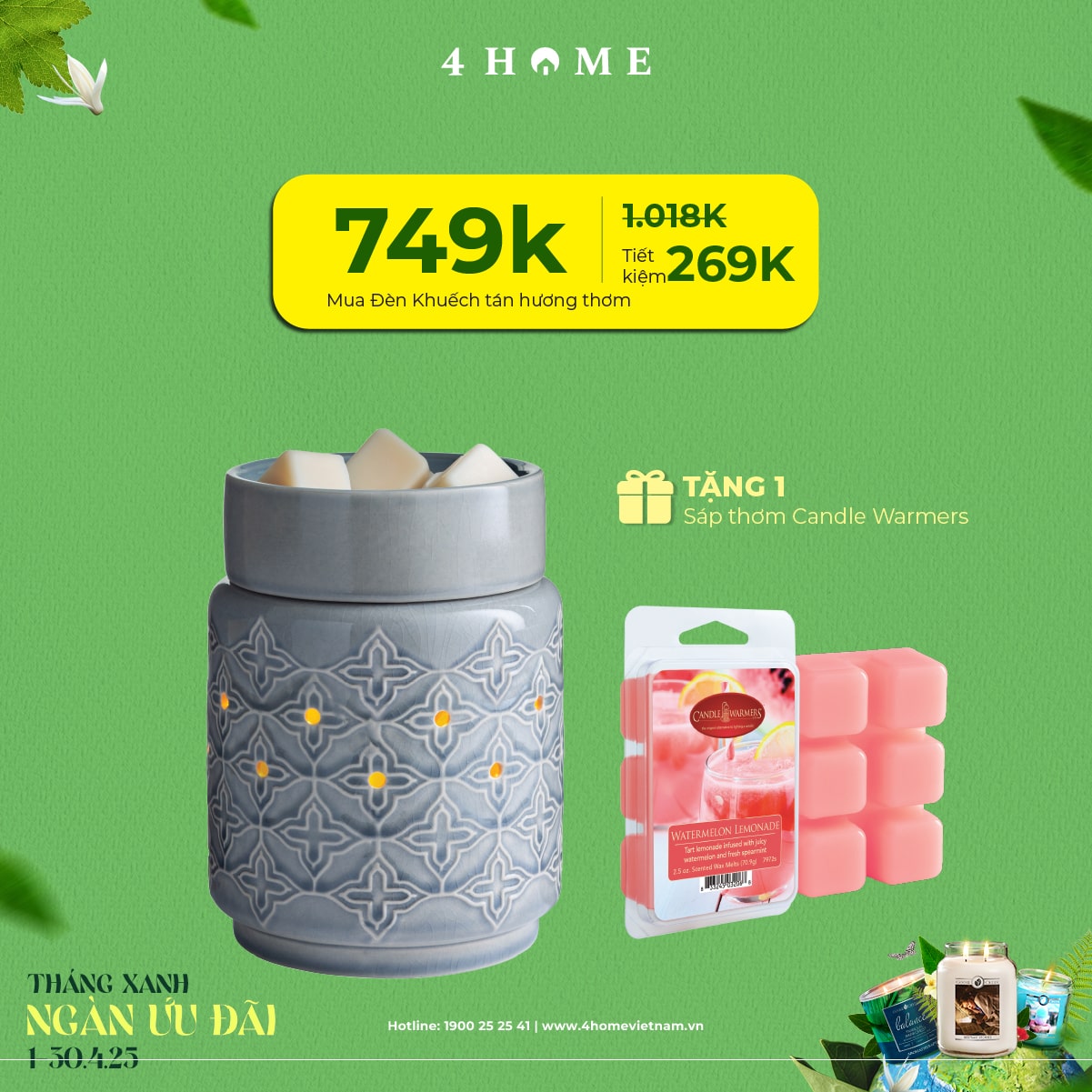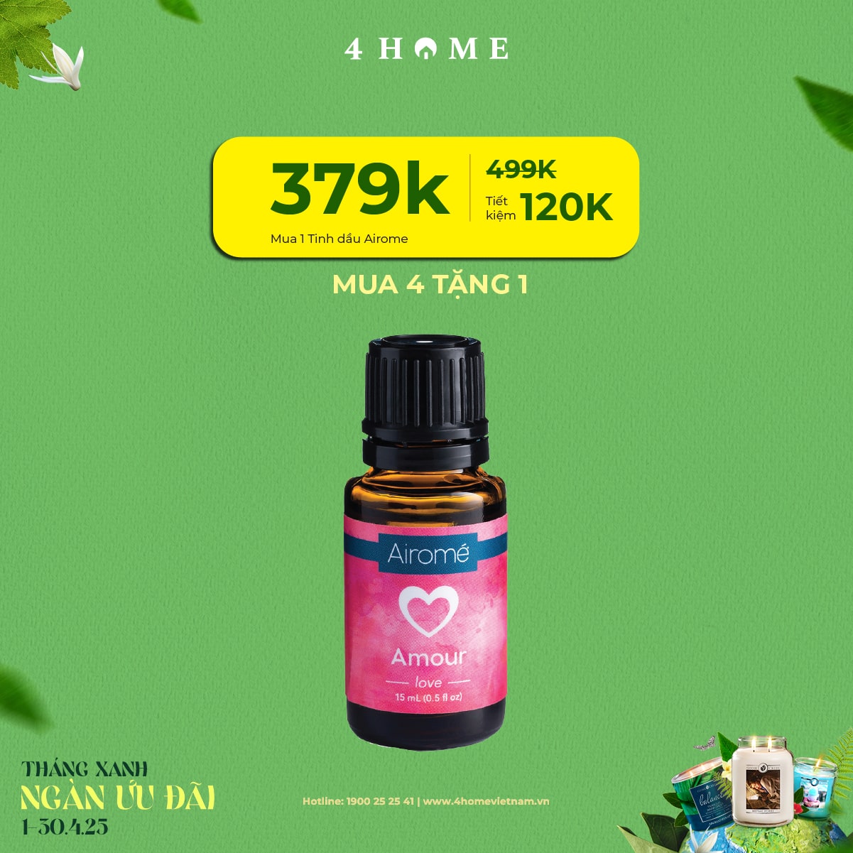 Cả rừng deal đang chờ bạn khám phá: từ nến thơm, tinh dầu, túi chườm thảo mộc, sản phẩm khử mùi chăm sóc không gian sống...Cùng 4Home biến tháng 4 thành một hành trình thư giãn với hương thơm xanh mát và ngập tràn ưu đãi bạn nha!