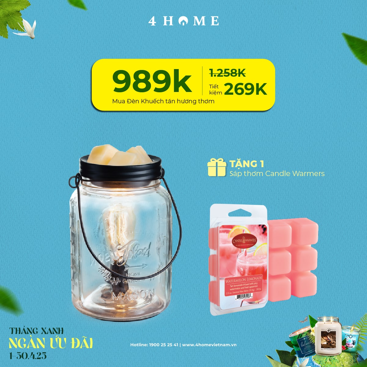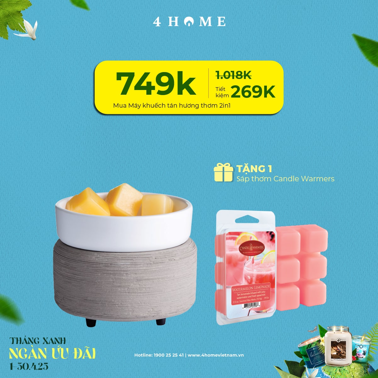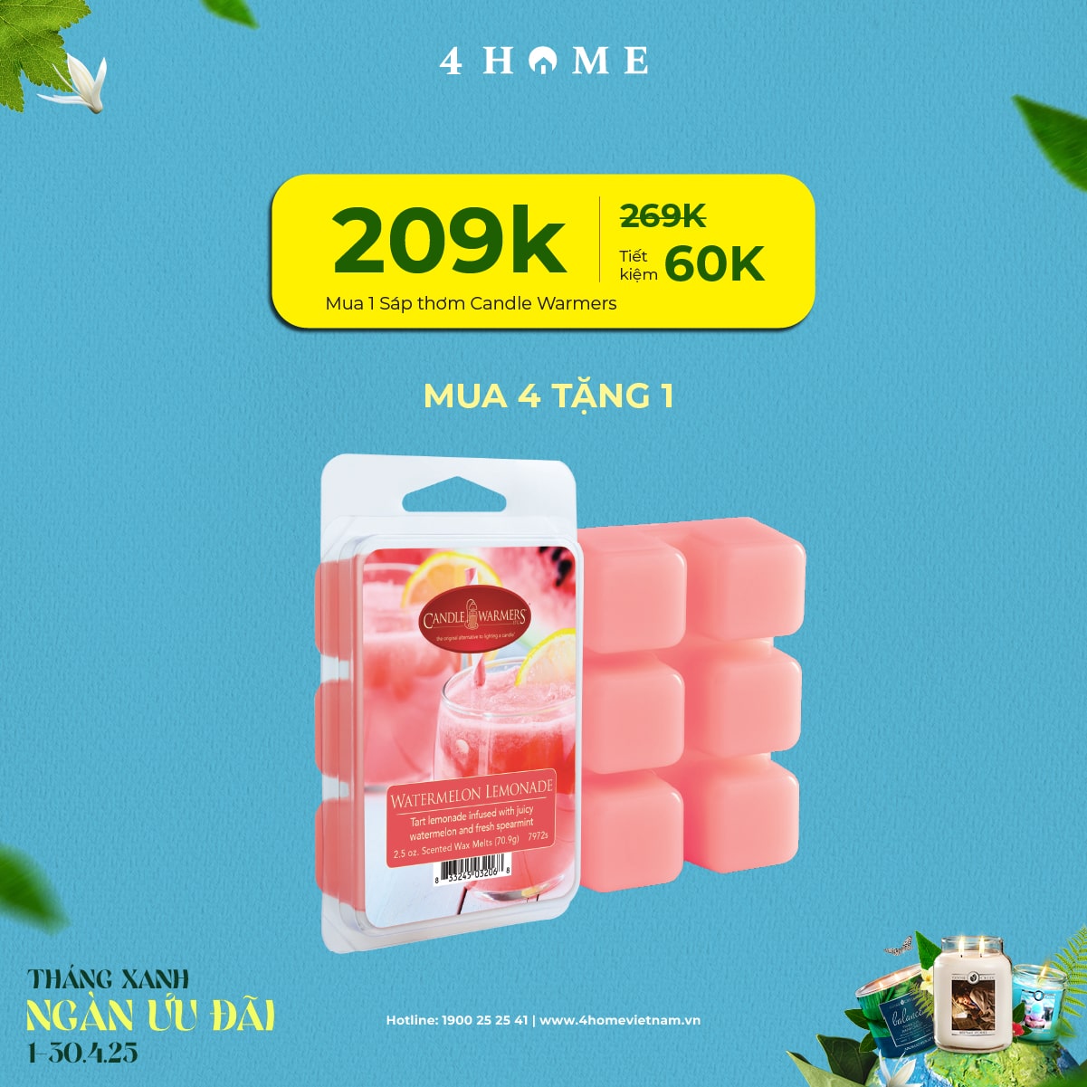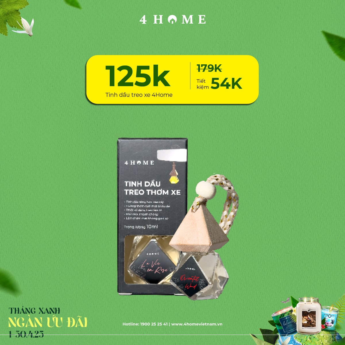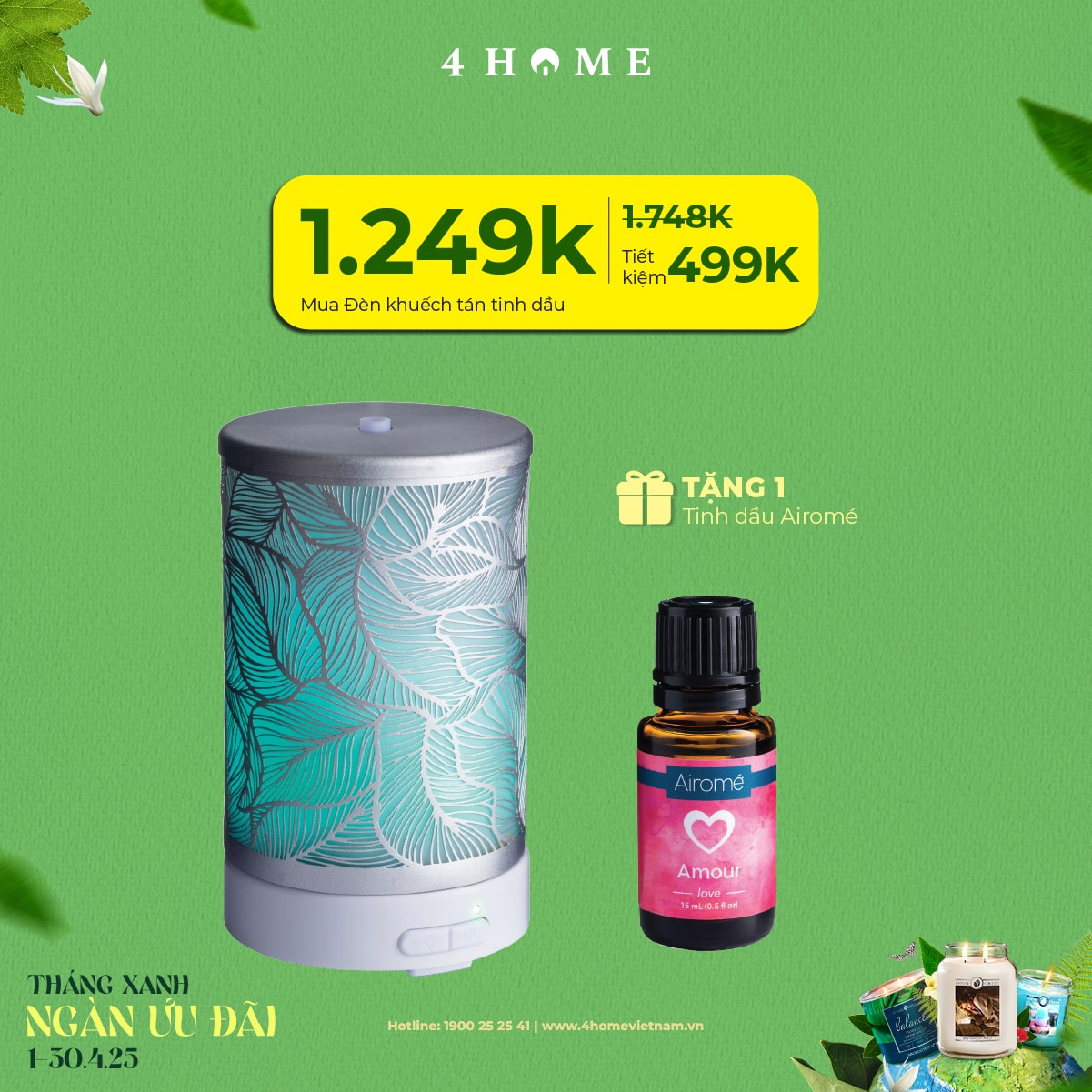 Cả rừng deal đang chờ bạn khám phá: từ nến thơm, tinh dầu, túi chườm thảo mộc, sản phẩm khử mùi chăm sóc không gian sống...Cùng 4Home biến tháng 4 thành một hành trình thư giãn với hương thơm xanh mát và ngập tràn ưu đãi bạn nha!