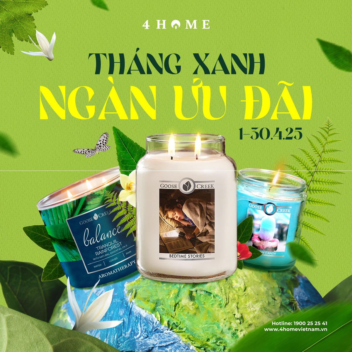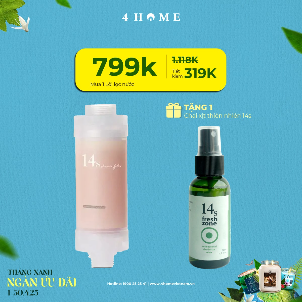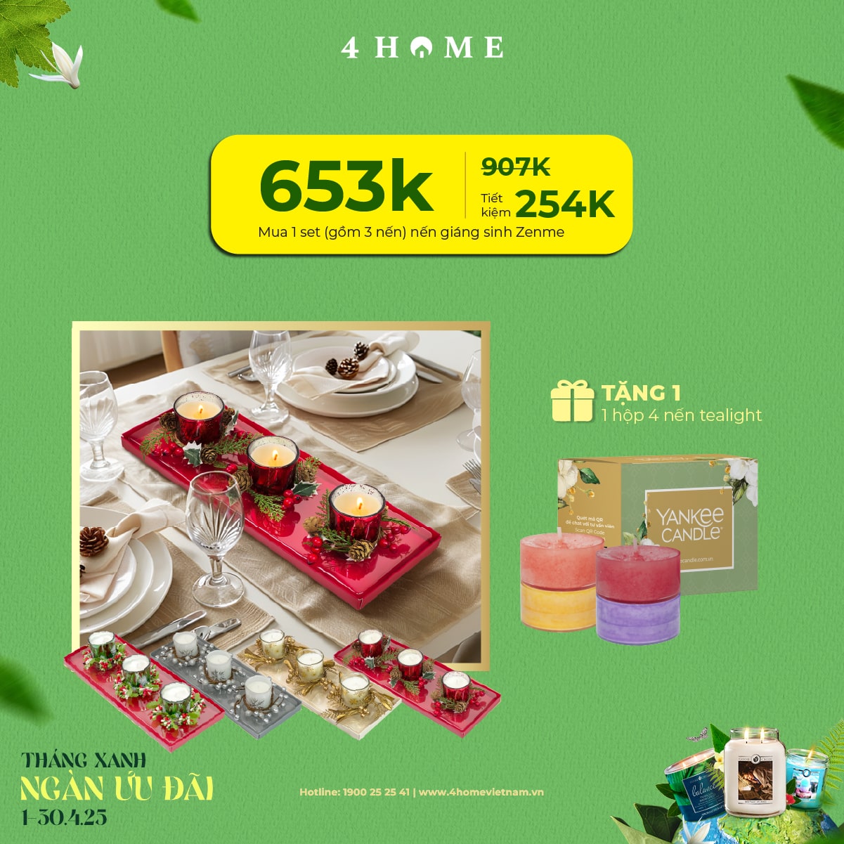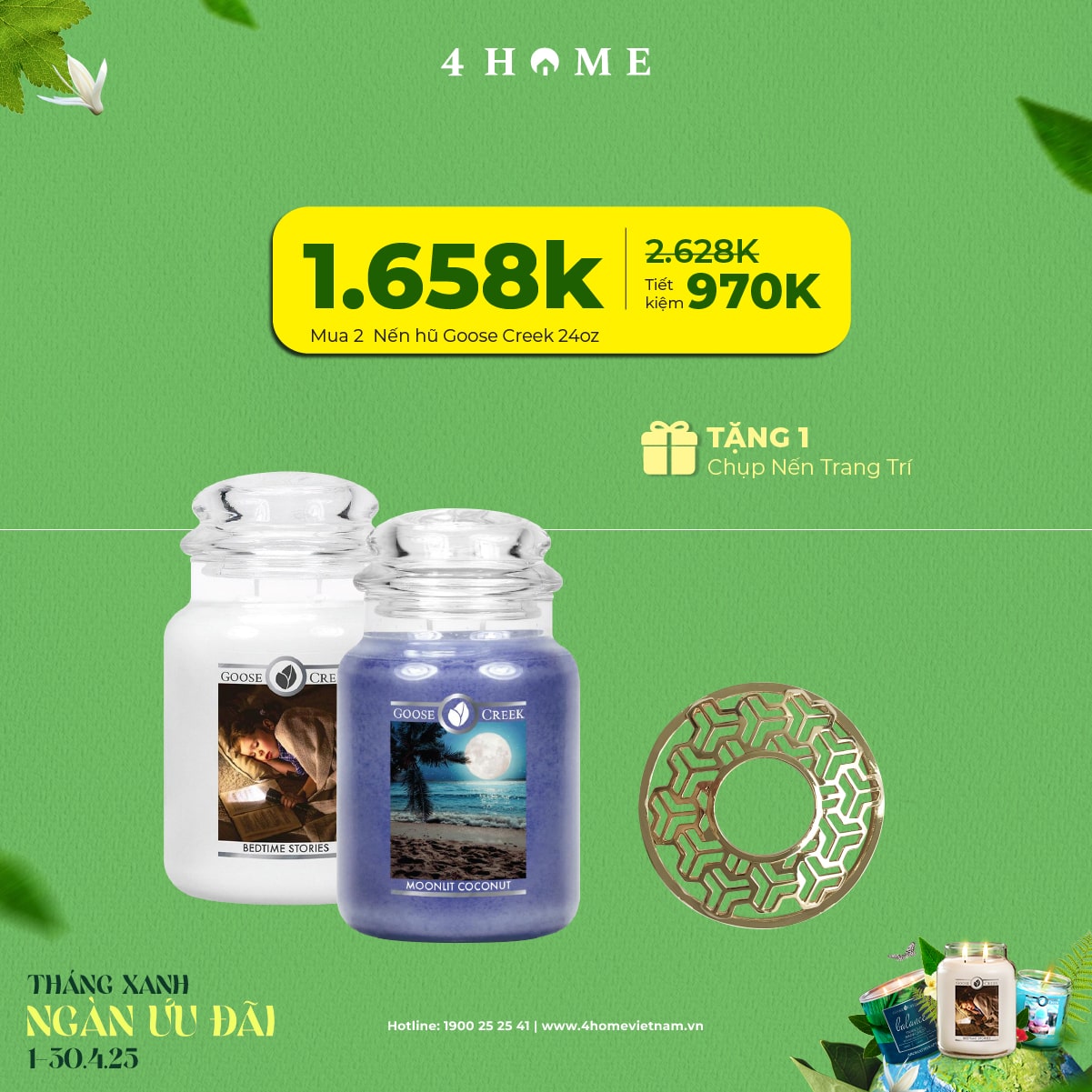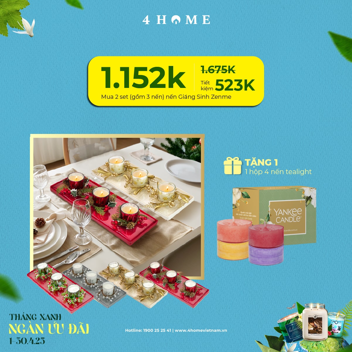 Cả rừng deal đang chờ bạn khám phá: từ nến thơm, tinh dầu, túi chườm thảo mộc, sản phẩm khử mùi chăm sóc không gian sống...Cùng 4Home biến tháng 4 thành một hành trình thư giãn với hương thơm xanh mát và ngập tràn ưu đãi bạn nha!