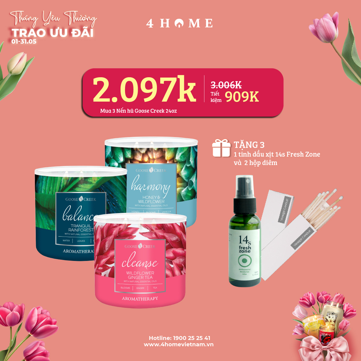 Cơ hội để tạo cho không gian nhà hương thơm mát mẻ và thư giãn sau một ngày dài làm việc với nhiều ưu đãi hấp dẫn đến từ 4Home trong tháng này bạn nhé!