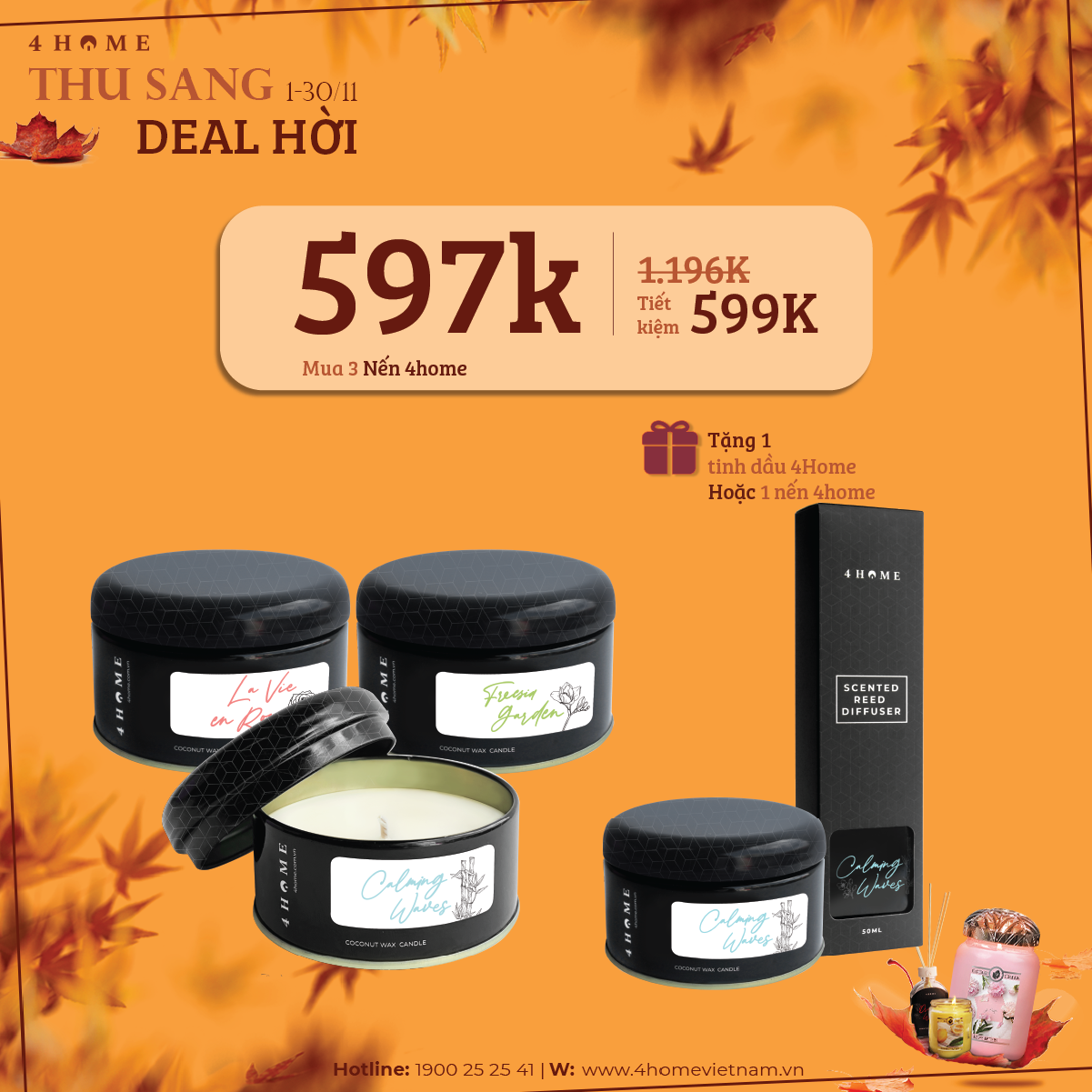 Nến thơm từ 4Home không chỉ mang đến phút giây yên bình ngay tại nhà mà còn giúp bạn giảm căng thẳng, mệt mỏi hiệu quả.