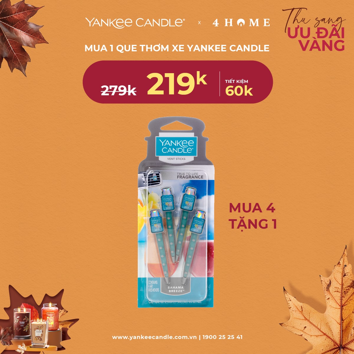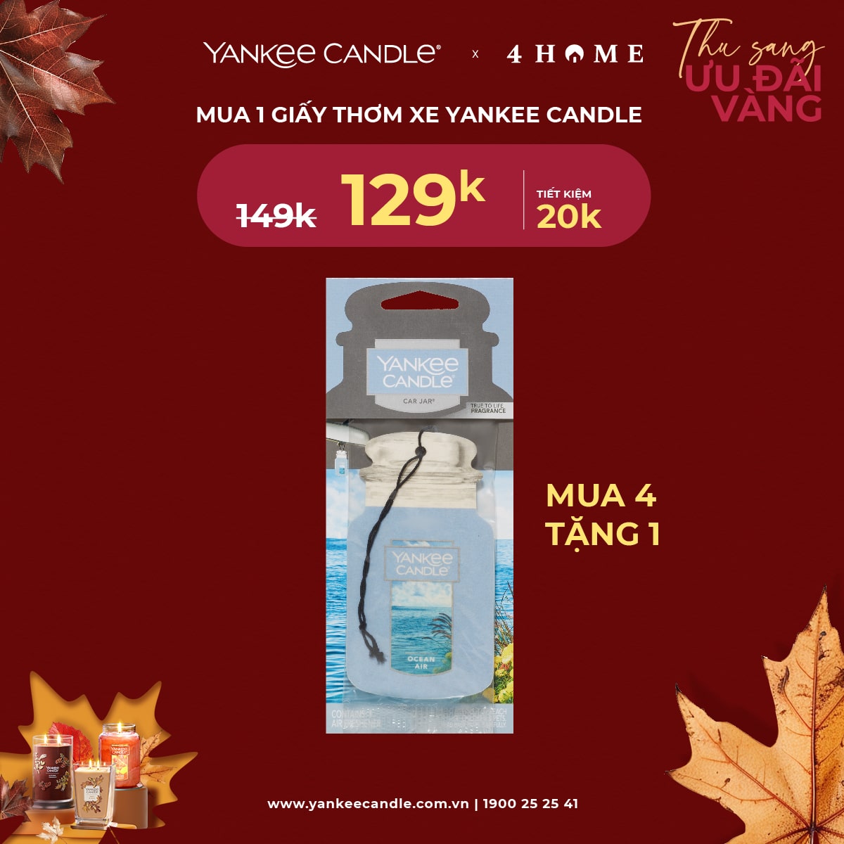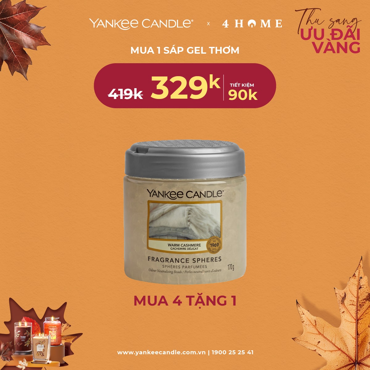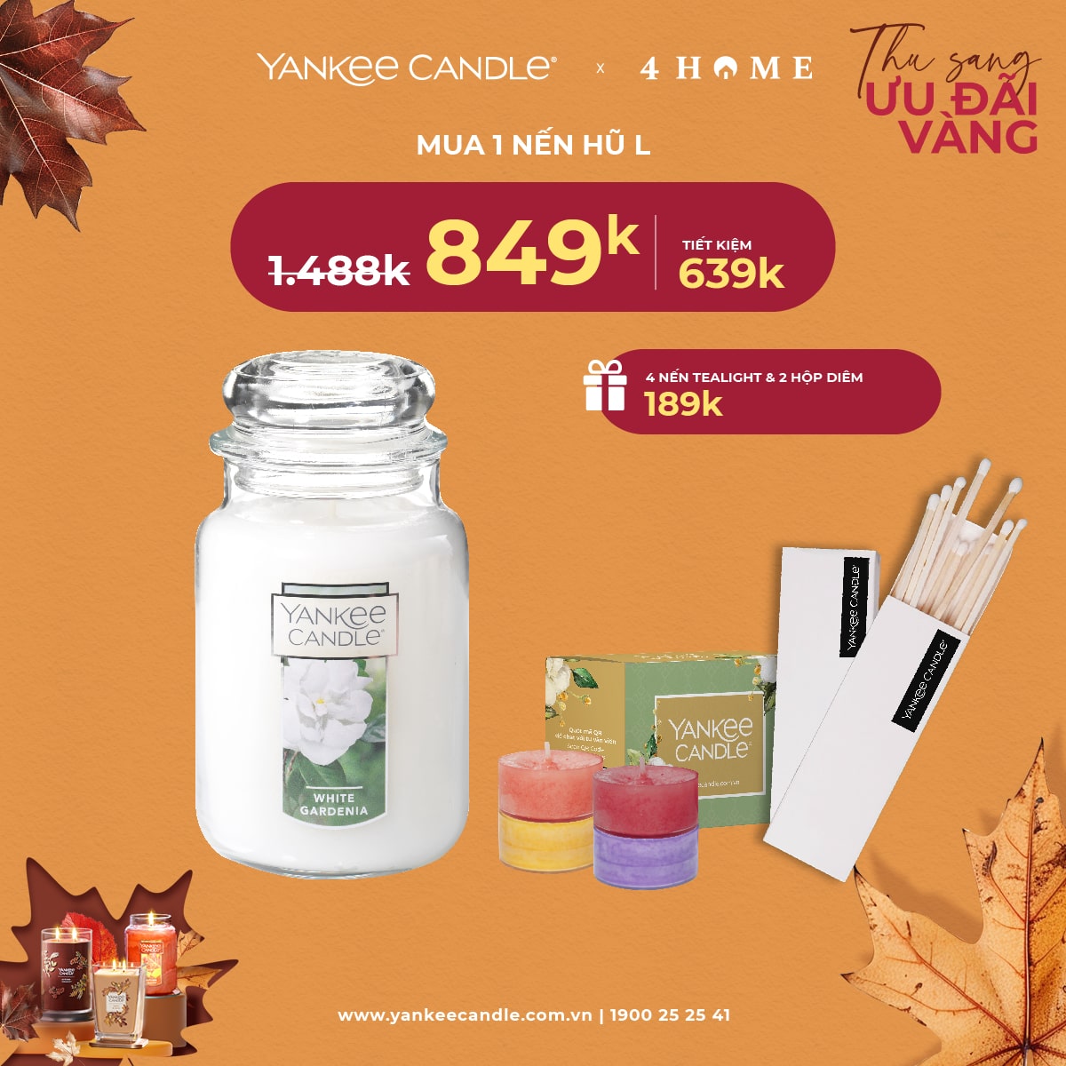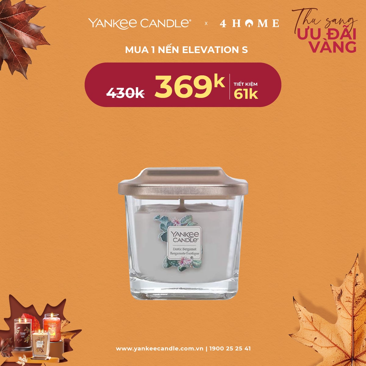 Mùa thu đã đến, không khí dịu mát là thời điểm lý tưởng để thắp lên những ngọn nến thơm, mang hương sắc ấm áp vào không gian sống. 4Home dành tặng bạn - những người yêu thích hương thơm ưu đãi vàng. Nhanh tay săn deal, cùng tận hưởng hương thơm trong mùa lãng mạn năm nay bạn nhé!