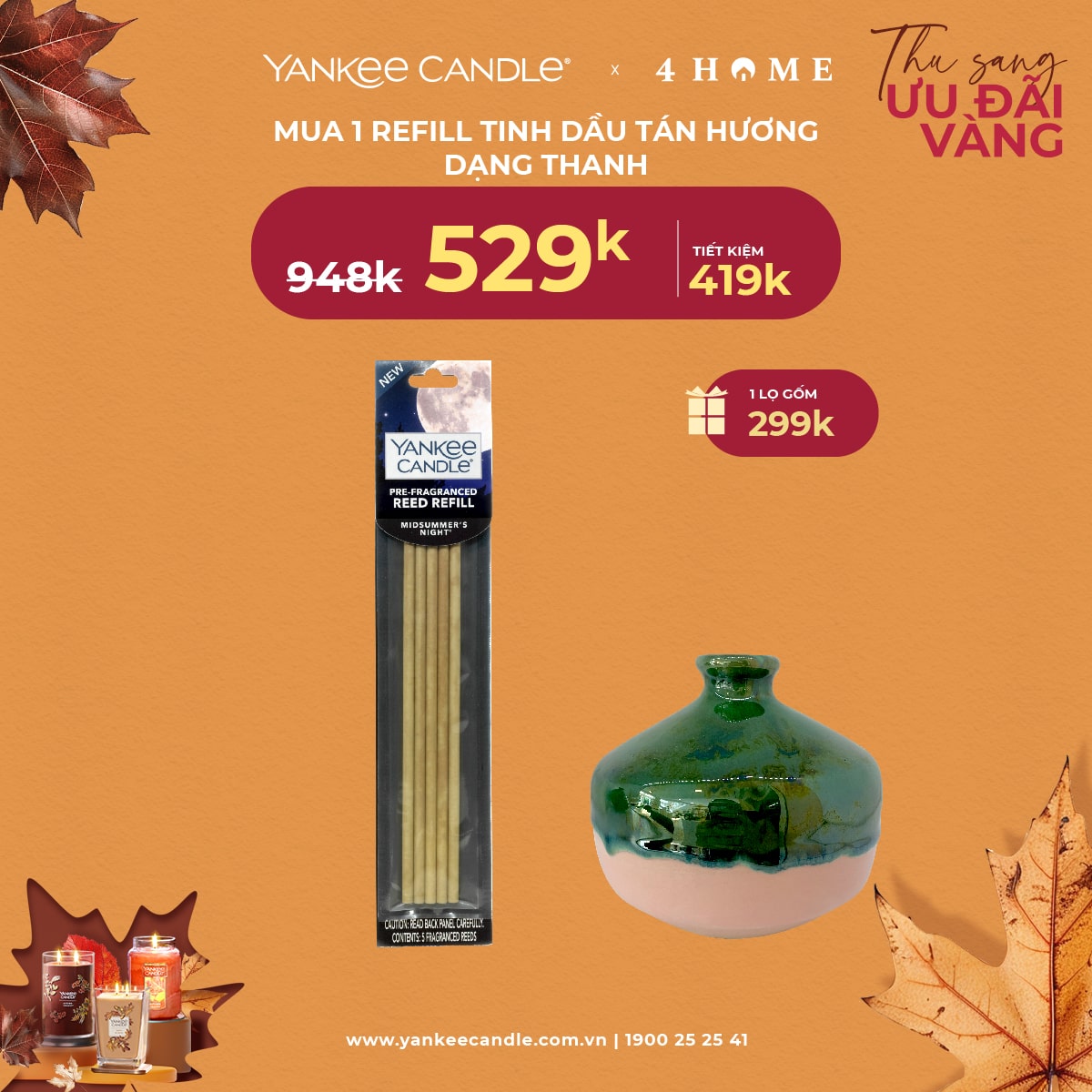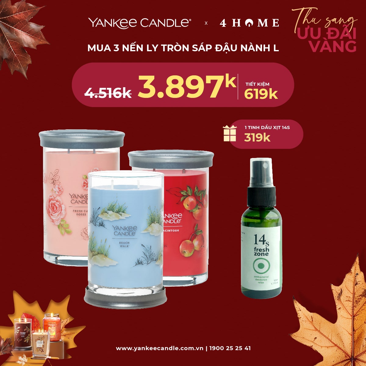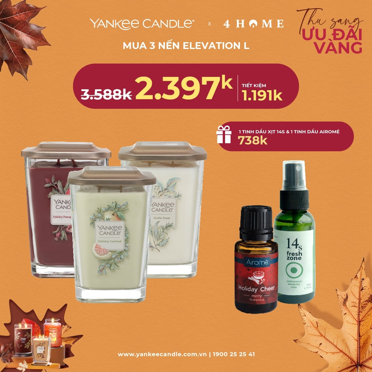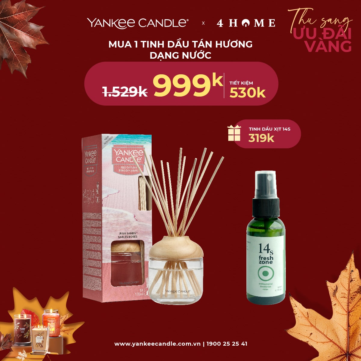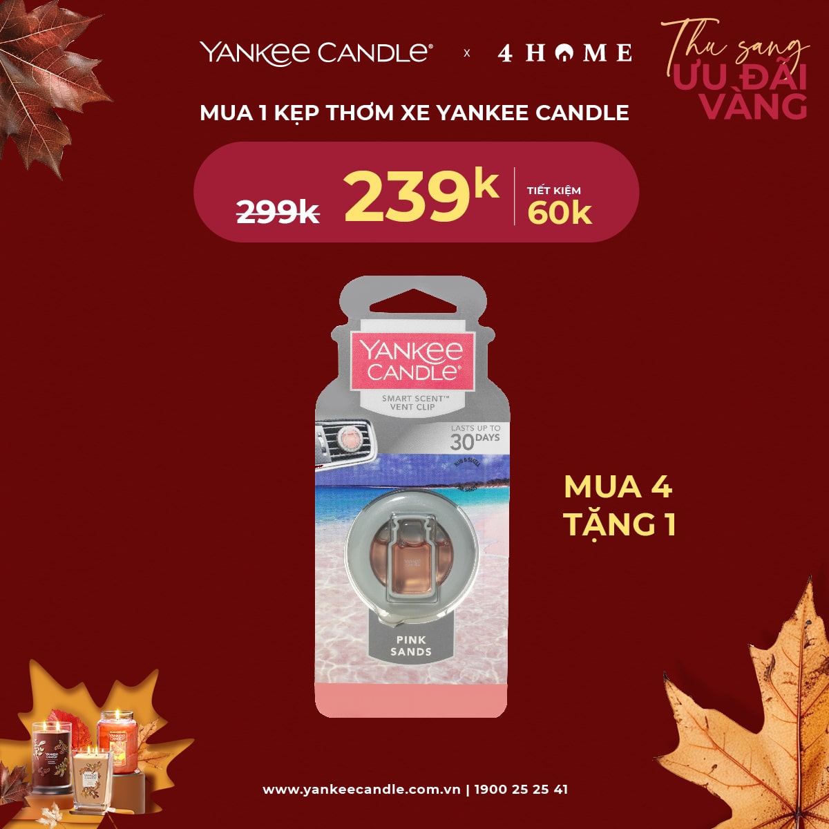 Mùa thu đã đến, không khí dịu mát là thời điểm lý tưởng để thắp lên những ngọn nến thơm, mang hương sắc ấm áp vào không gian sống. 4Home dành tặng bạn - những người yêu thích hương thơm ưu đãi vàng. Nhanh tay săn deal, cùng tận hưởng hương thơm trong mùa lãng mạn năm nay bạn nhé!