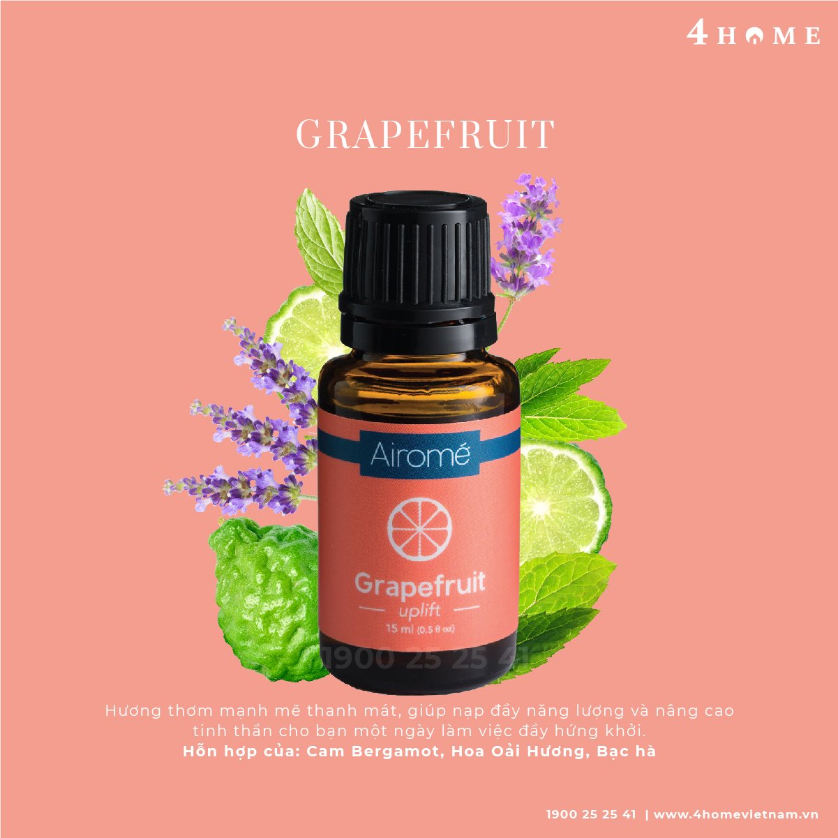 GRAPEFRUIT: Hương thơm mạnh mẽ thanh mát, giúp nạp đầy năng lượng và nâng cao tinh thần cho bạn một ngày làm việc đầy hứng khởi.