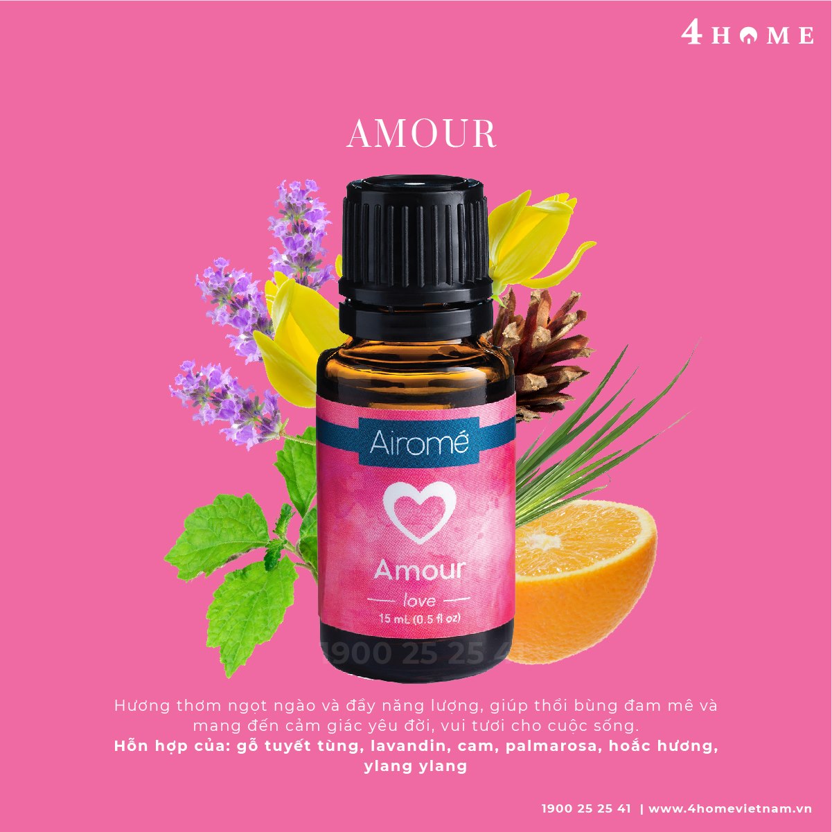 AMOUR: Hương thơm ngọt ngào và đầy năng lượng, giúp thổi bùng đam mê và mang đến cảm giác yêu đời, vui tươi cho cuộc sống.