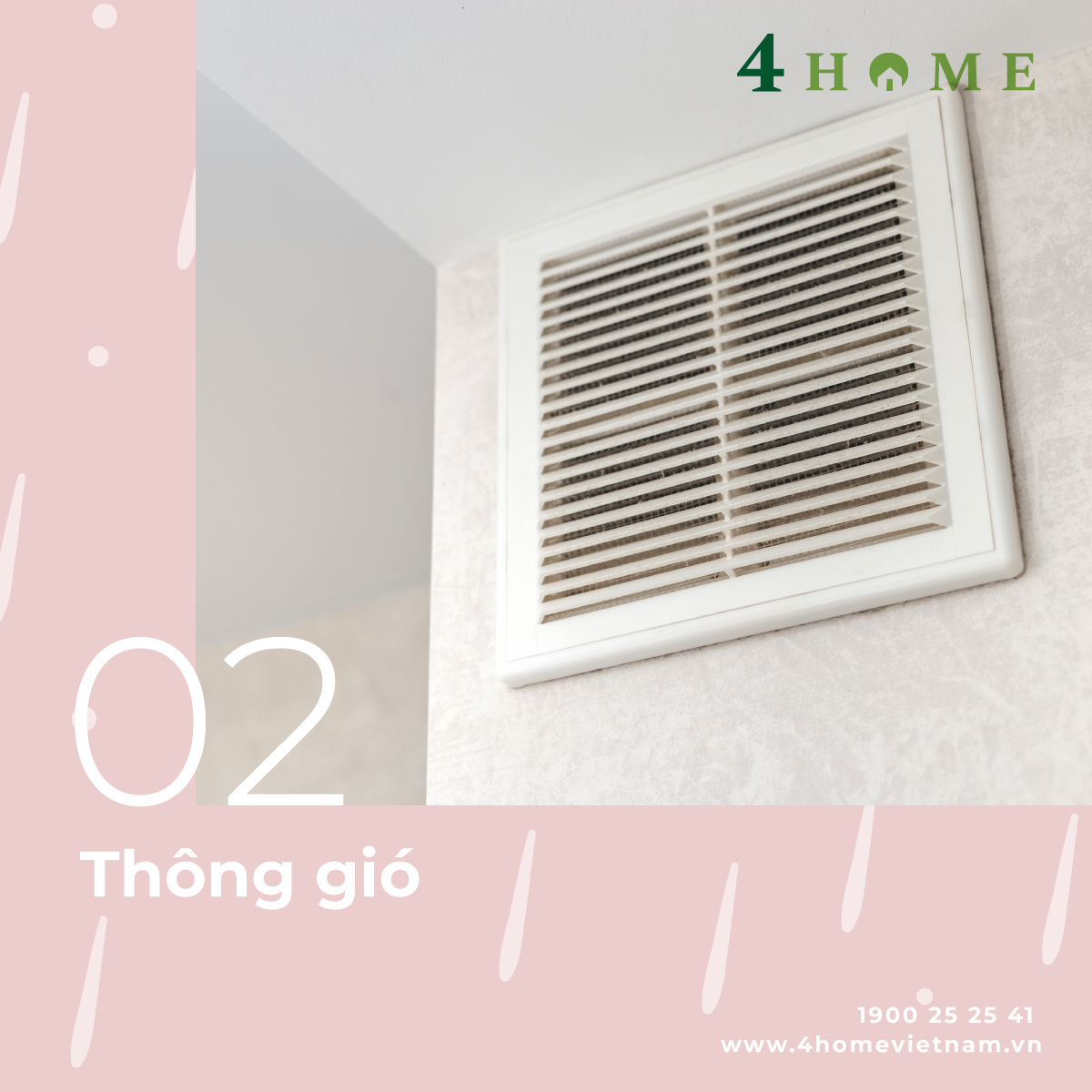 khi không có mưa, bạn nên mở tất cả cửa sổ, cửa ra vào hoặc lắp đặt quạt thông gió âm trần trong nhà. Điều này giúp lưu thông không khí giữa bên trong và bên ngoài nhà, đồng thời làm khô thoáng, loại bỏ độ ẩm trong nhà.