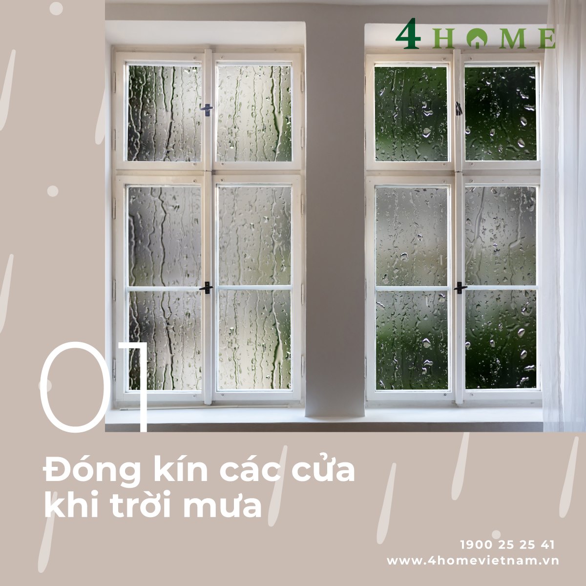 Hãy nhớ kiểm tra các cửa sổ, cửa chính đã được đóng kín hay chưa để tránh trường hợp mưa hắt vào làm ướt sàn nhà, bàn ghế và các vật dụng khác.